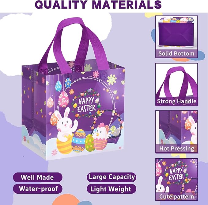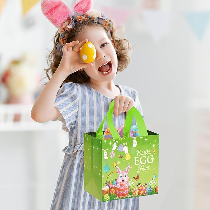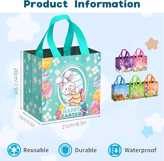 Easter Basket Egg Hunt Bags Bunny Carrot Chick Gift Bags with Handles,Party Supplies,Happy Small Easter Basket Container,8.27x7.9x5.9inch 6-Piece