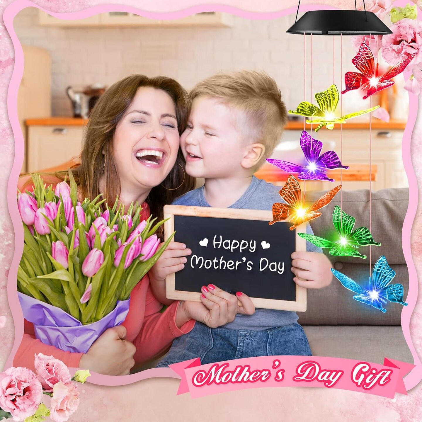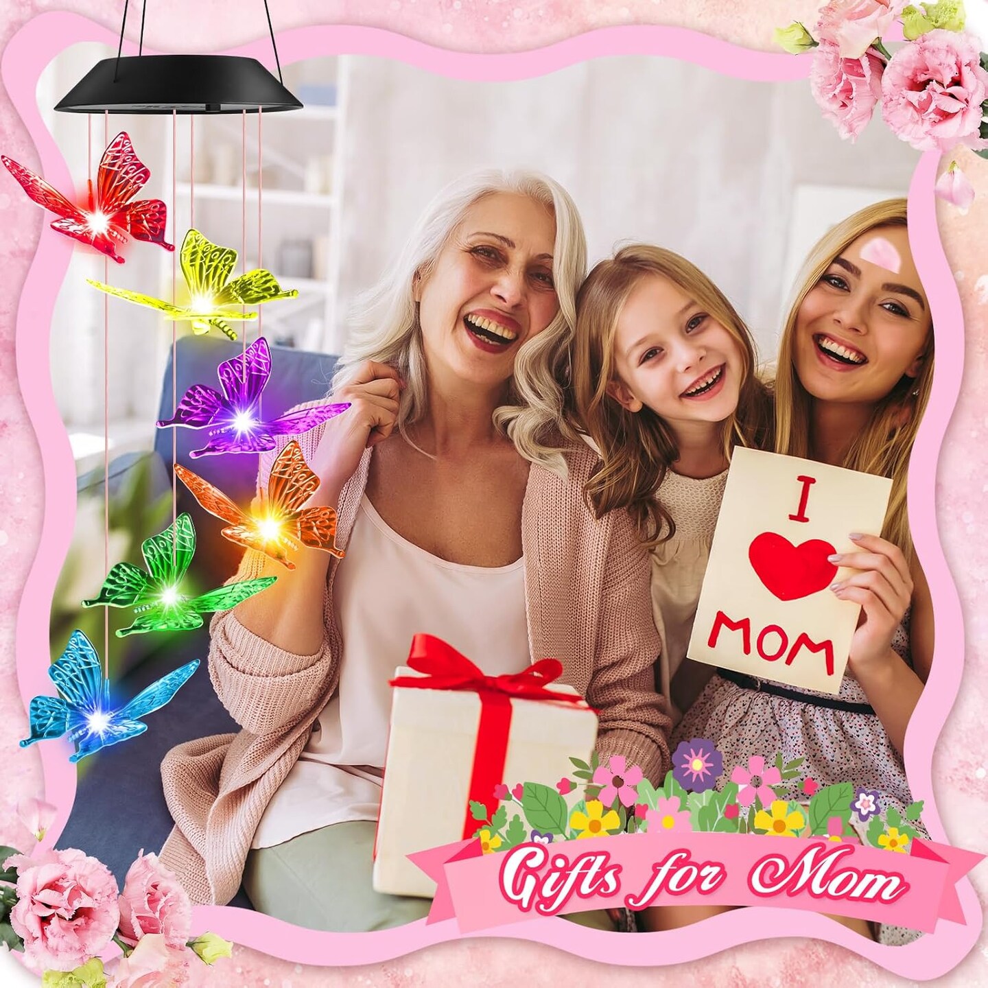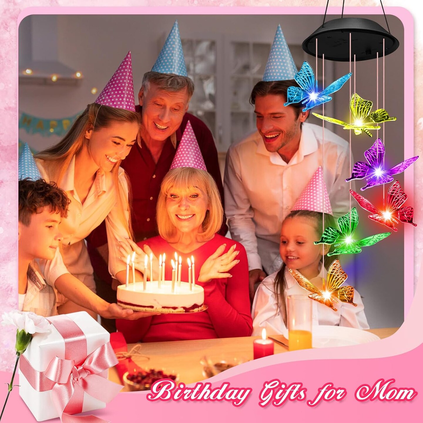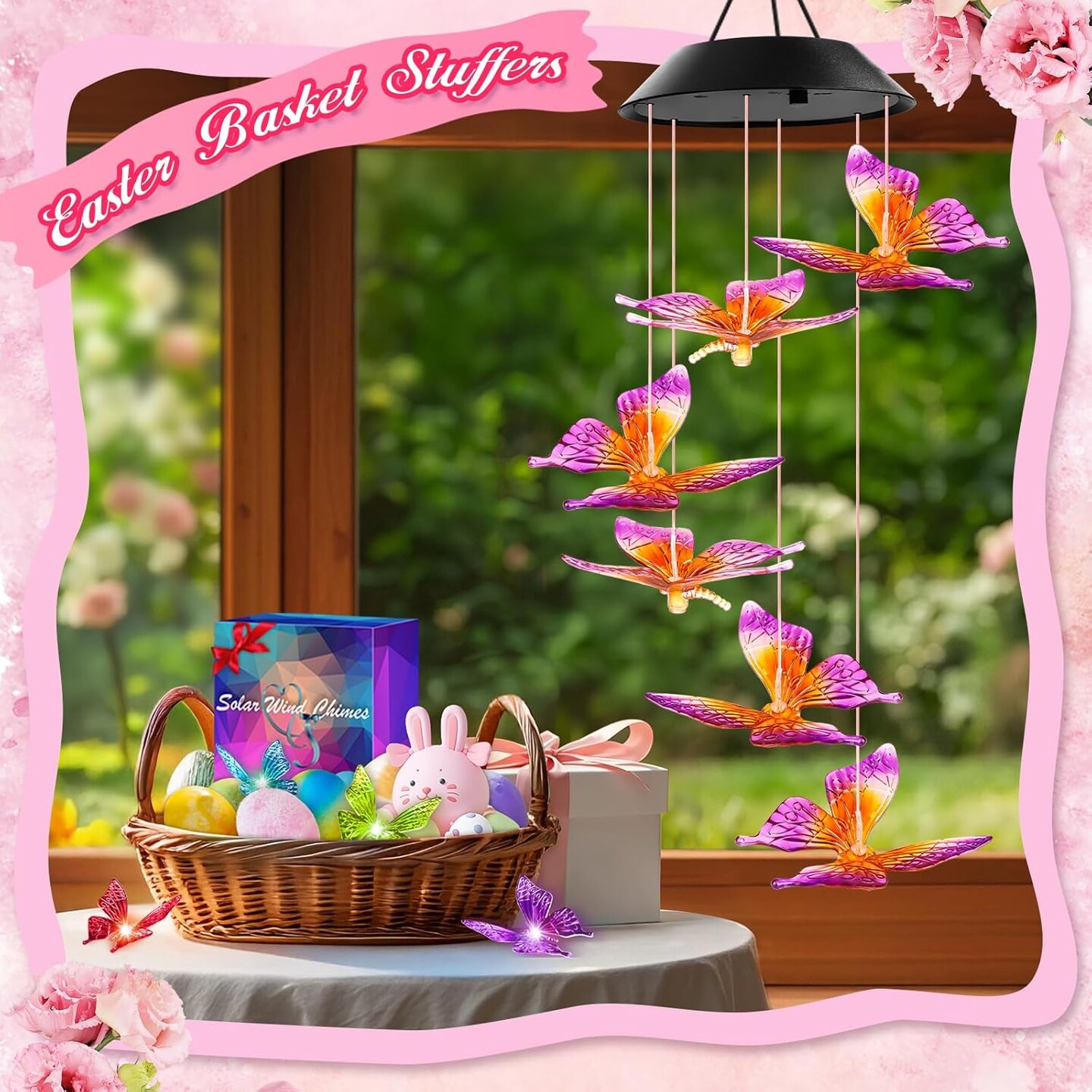 Easter Basket Stuffers for Adults, Birthday Gifts for Women Mom Her, Solar Lights Outdoor Wind Chimes for Outside Garden Yard Patio Porch Hanging Decor Butterfly Gifts for Grandma Mothers Day