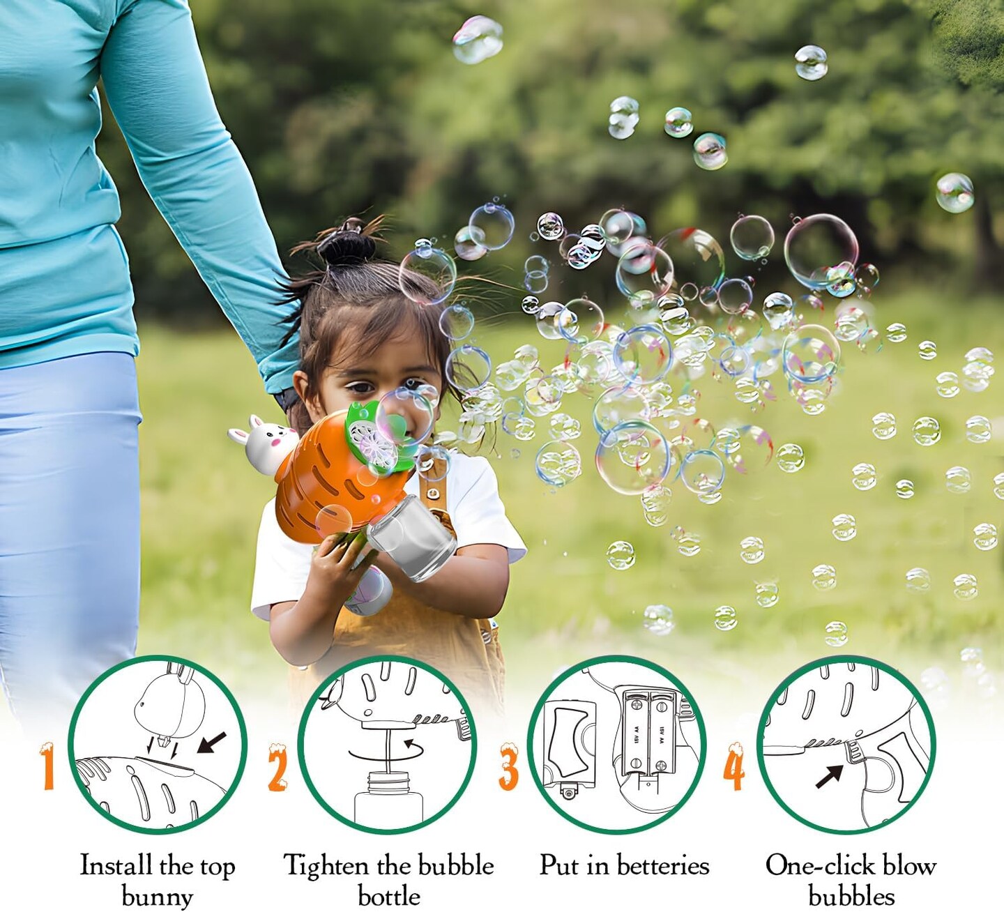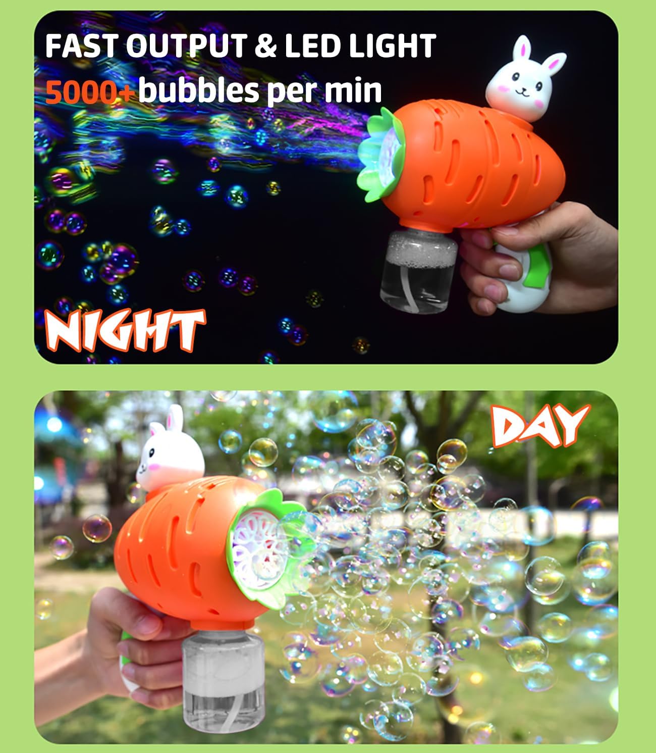 Easter Bubble Machine, Leak-Proof & Rich Bubble Bunny Bubble Blower with Radish Shape, Portable Bubble Maker Outdoor Perfect Graduation Party Easter Basket Stuffers for Kids