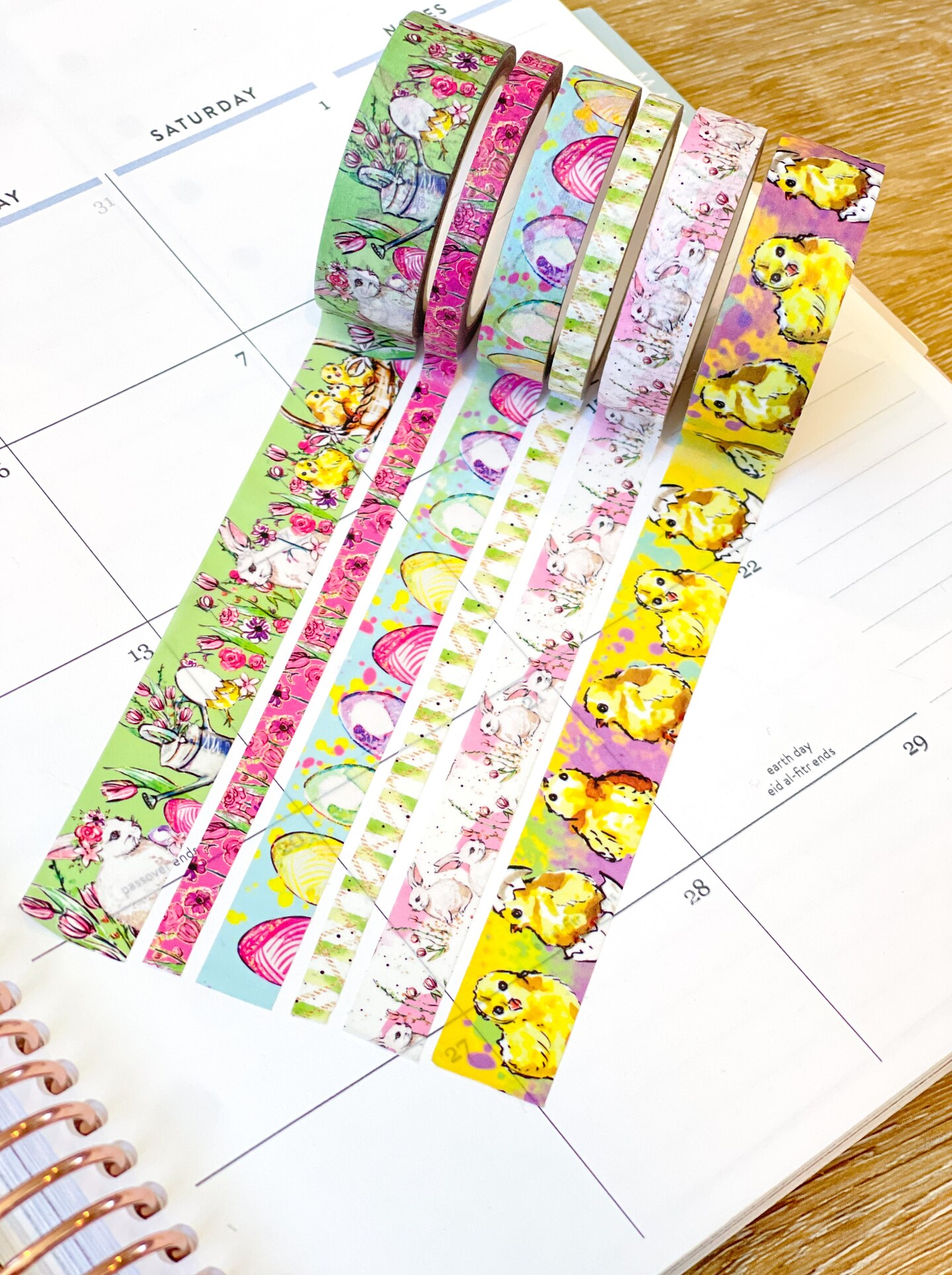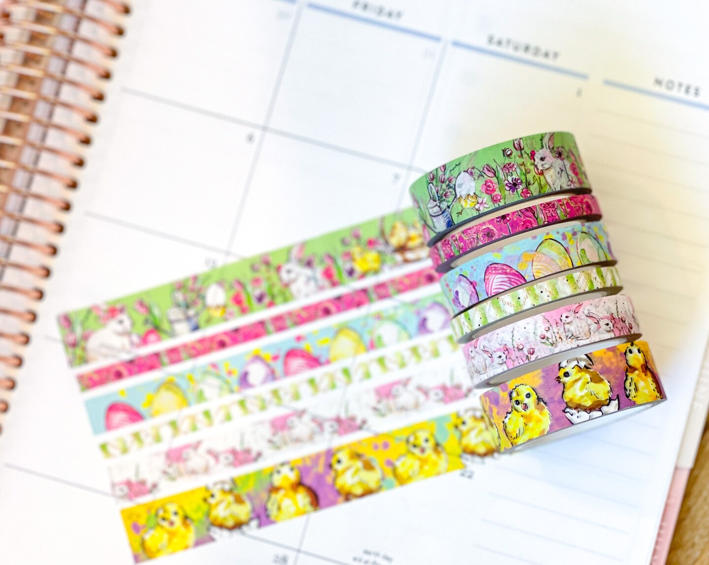 Easter Bunnies Chicks Yellow and Pink Easter Eggs Spring Washi Tape Set (#W080)