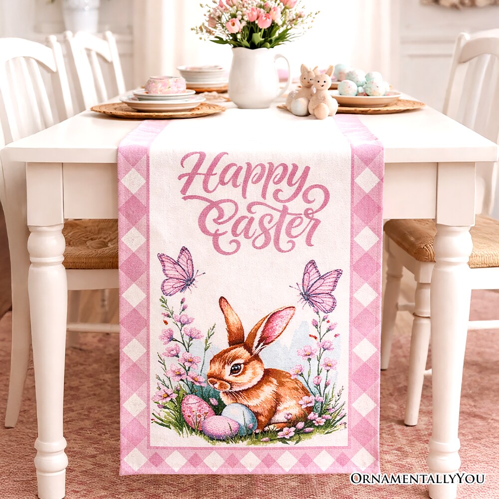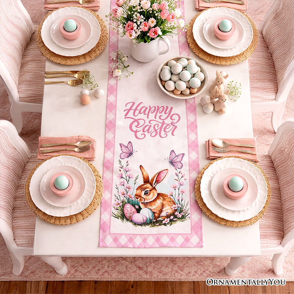 Easter Bunny 72" Jacquard Table Runner, High Quality Spring Holiday Rectangle Tablecloth with Cute Rabbit Design