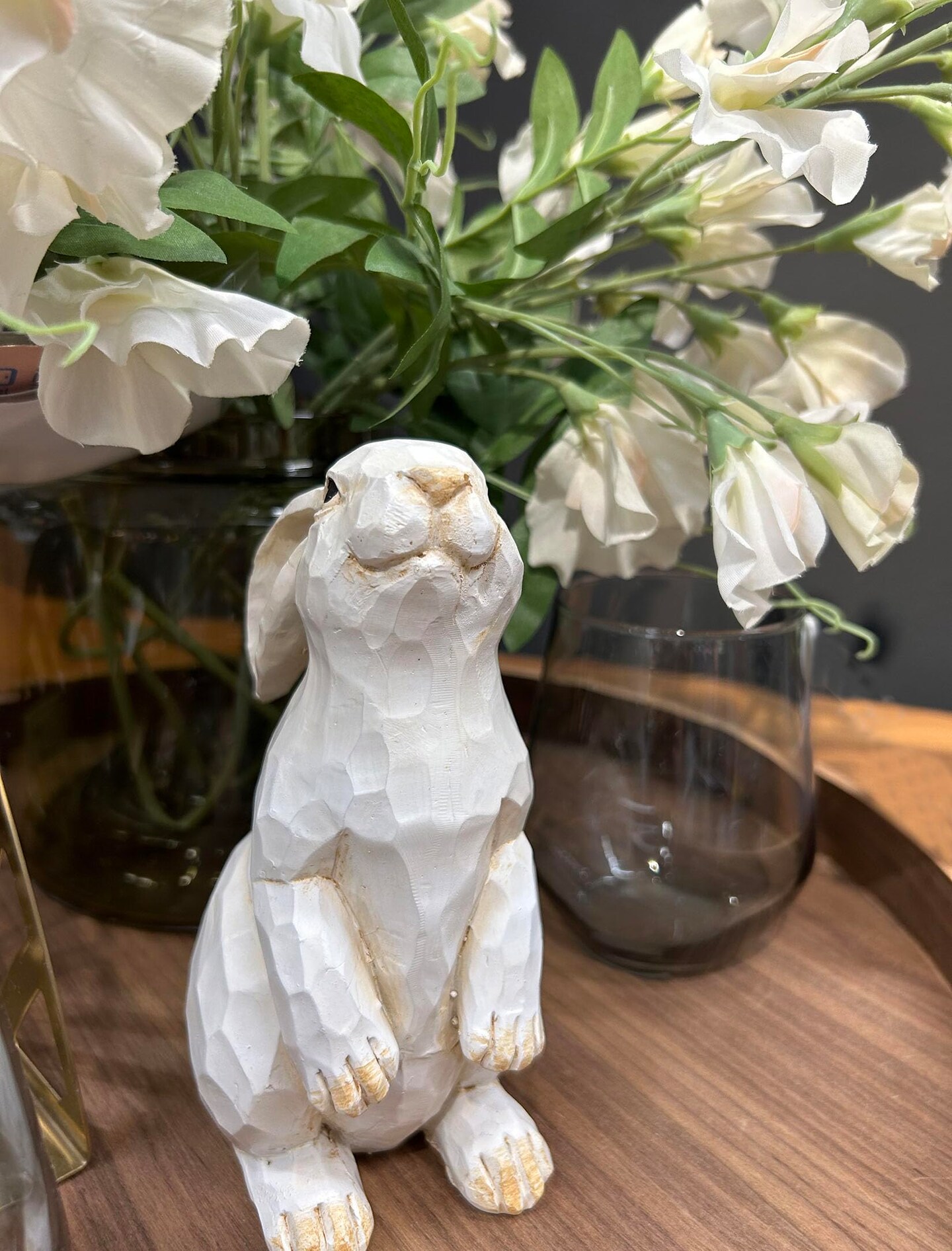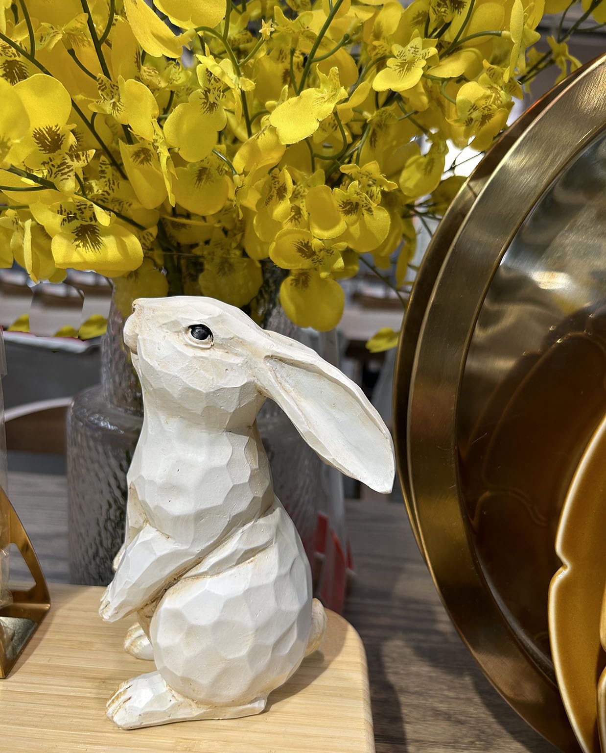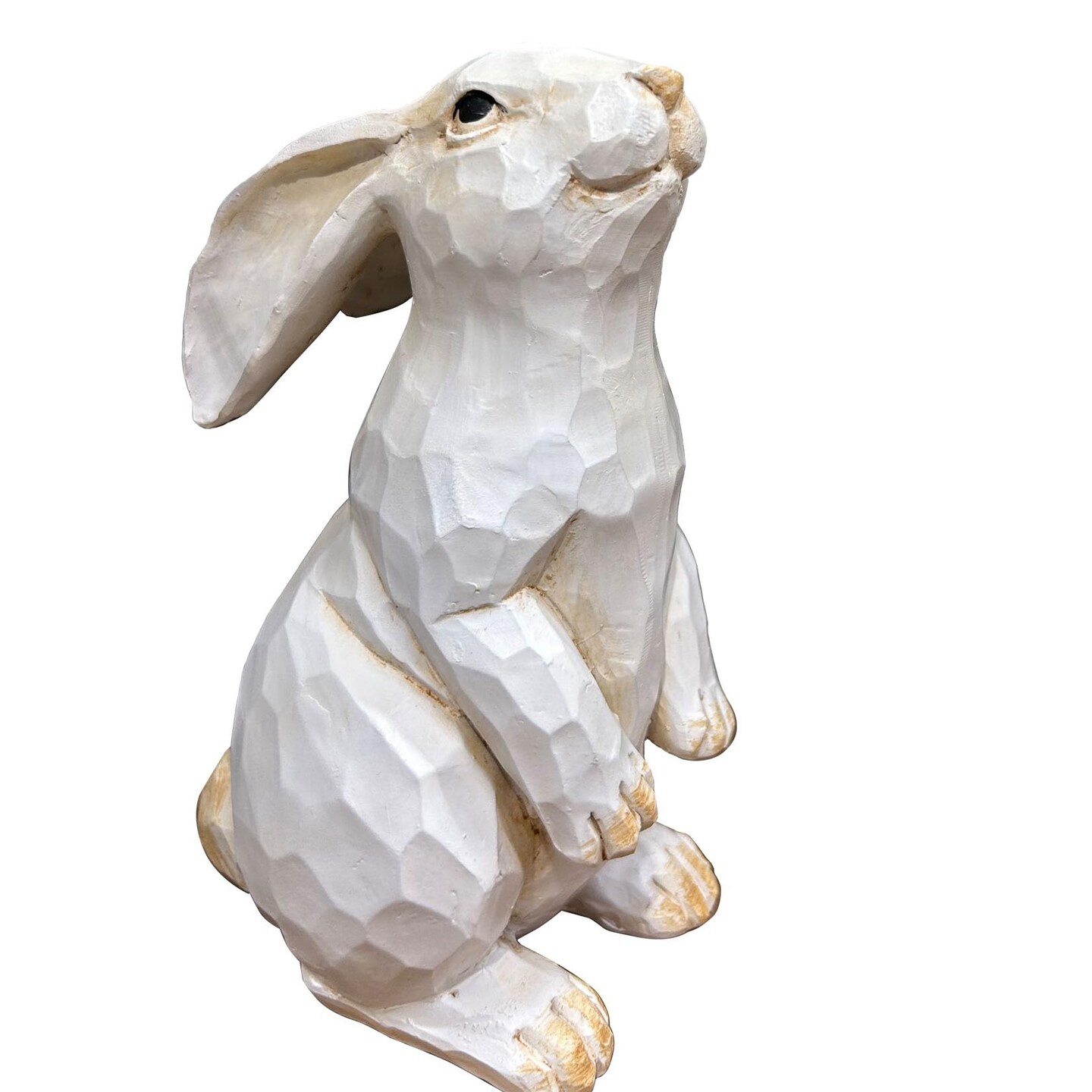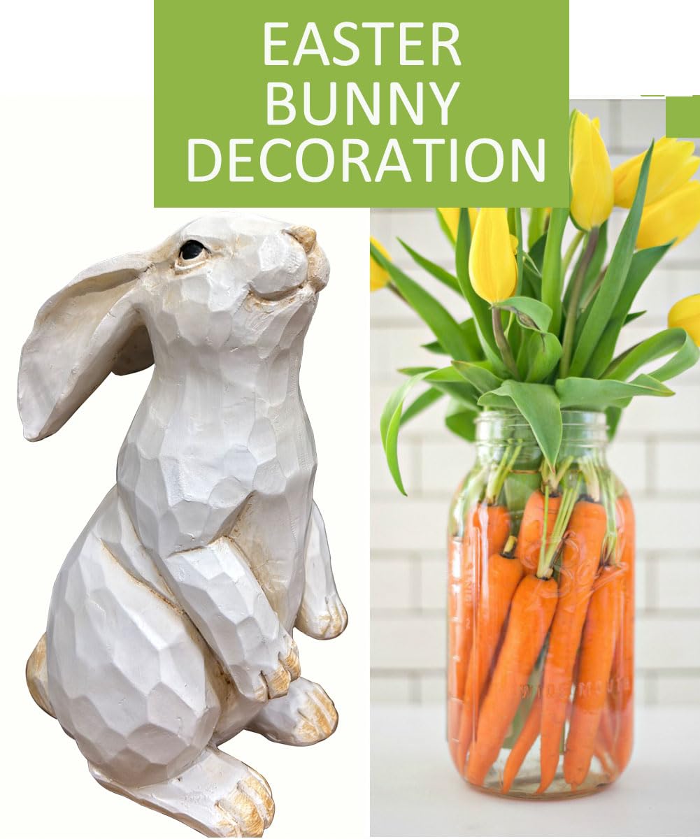 Easter Bunny Decoration, Decorative Farmhouse Modern Standing White Rabbit Bunny Figurine, Home Decor Accents Carved Rustic Distressed Animal Bunny Rabbits Ornaments
