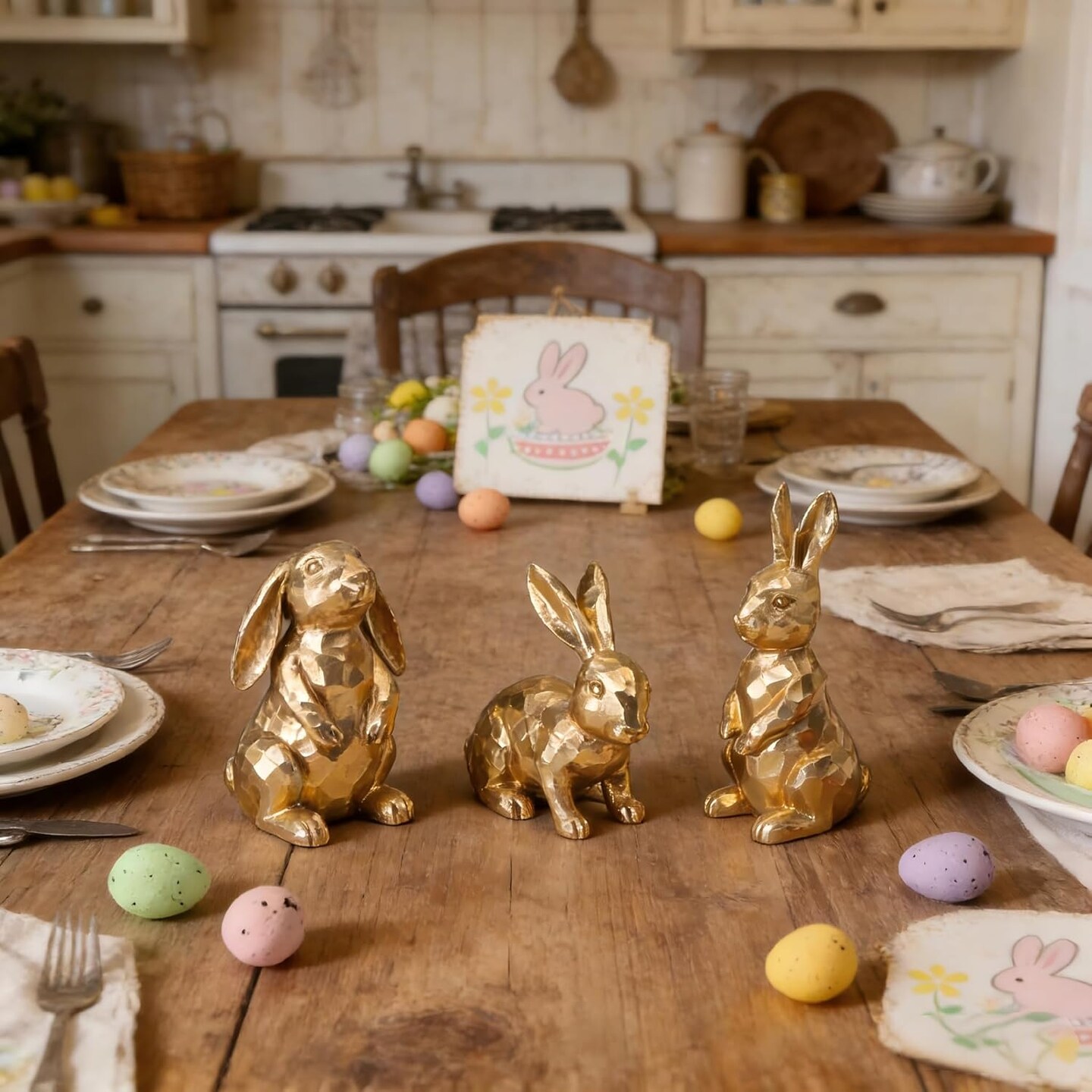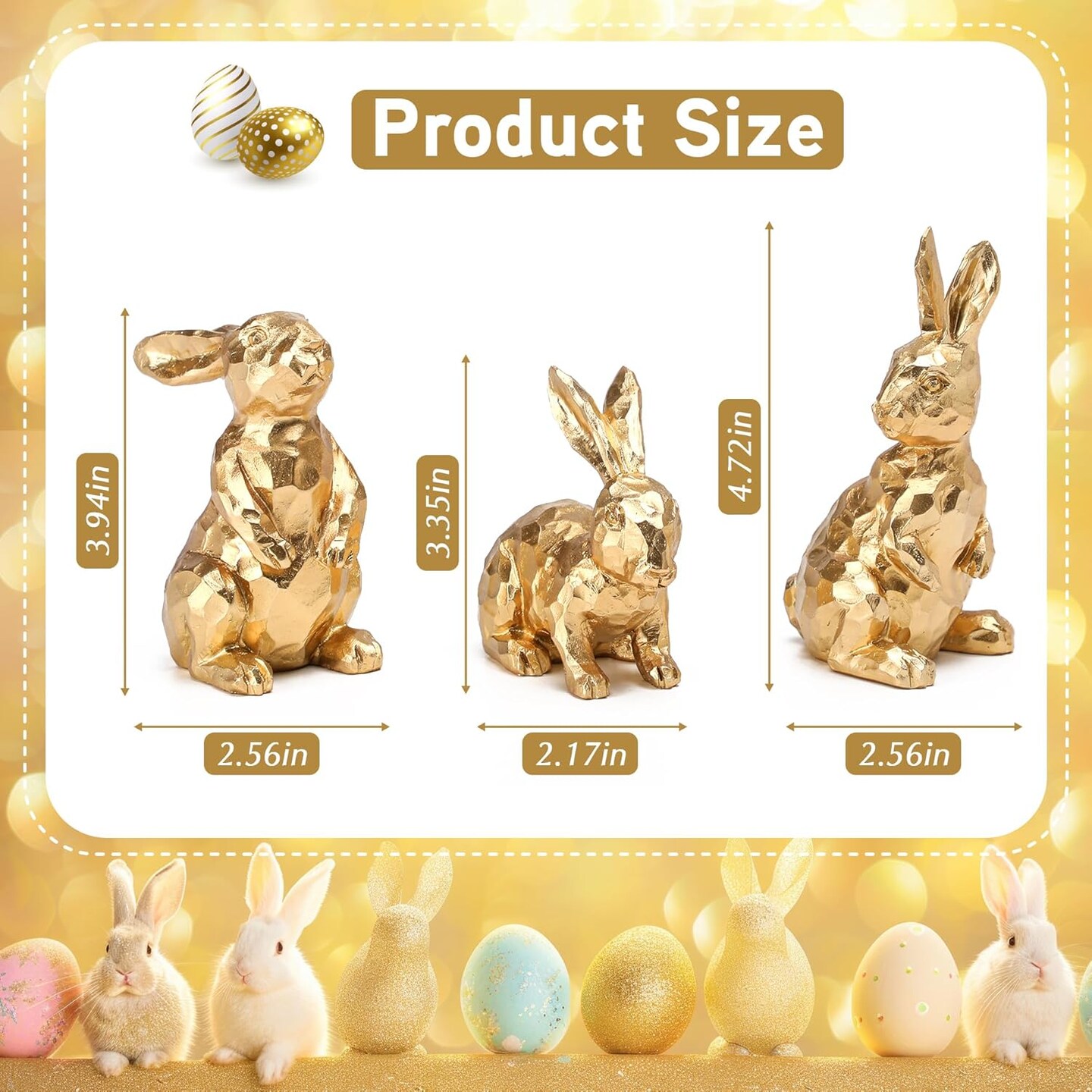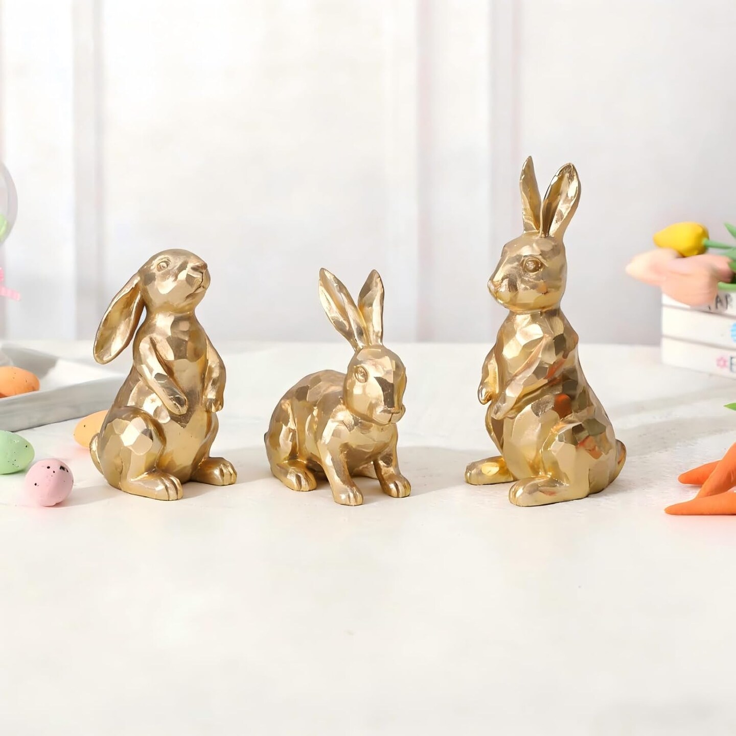 Easter Bunny Decorations – Set of 3 Golden Resin Rabbit Figurines for Easter Table Centerpiece, Spring Home Décor, and Holiday Display