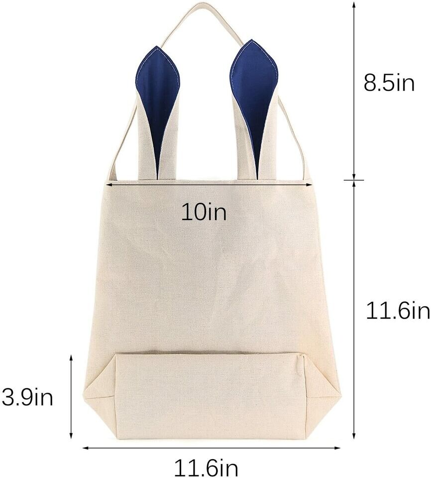Easter Bunny Ear Bag & Basket, Dual Layer Canvas Bag for Easter Egg Hunt Basket