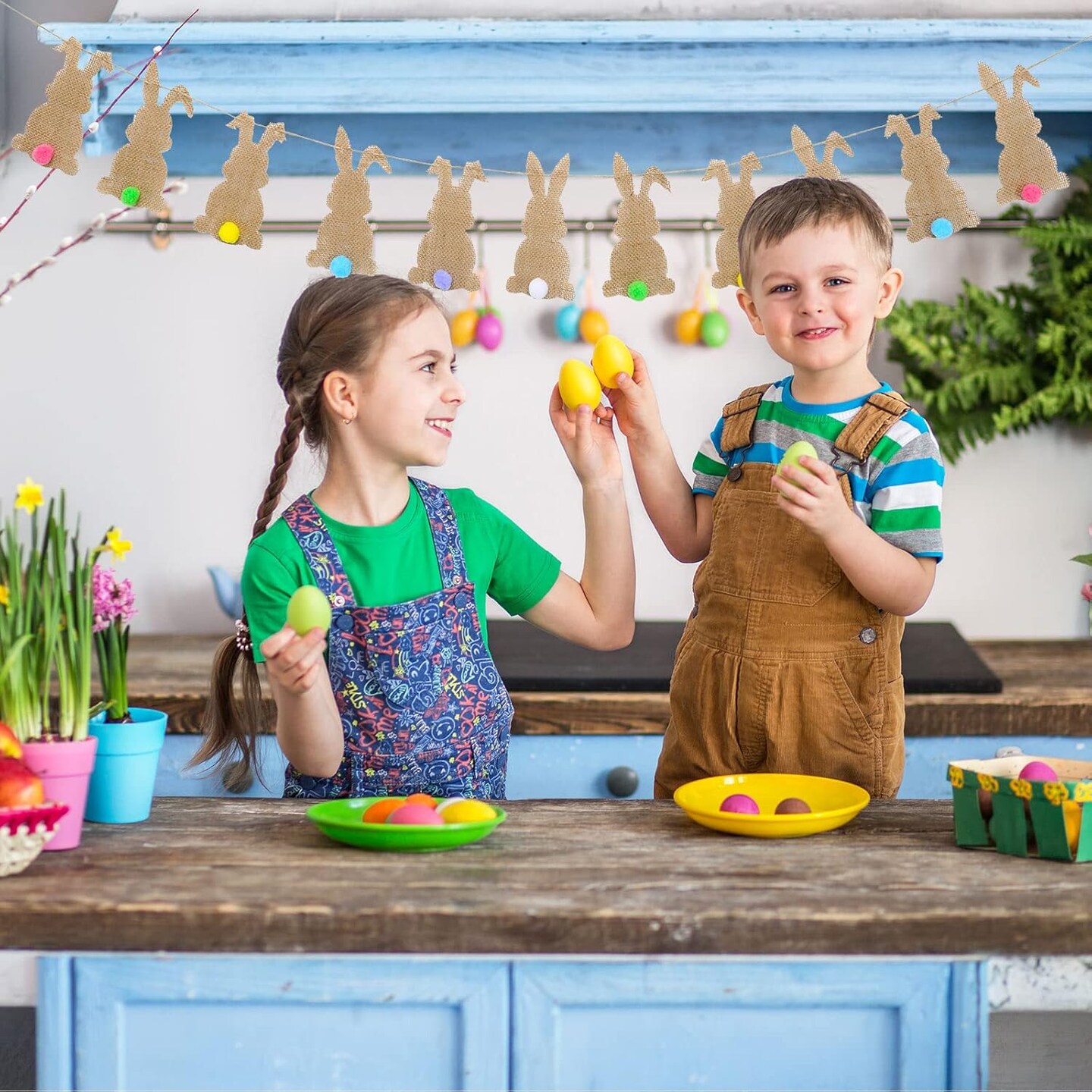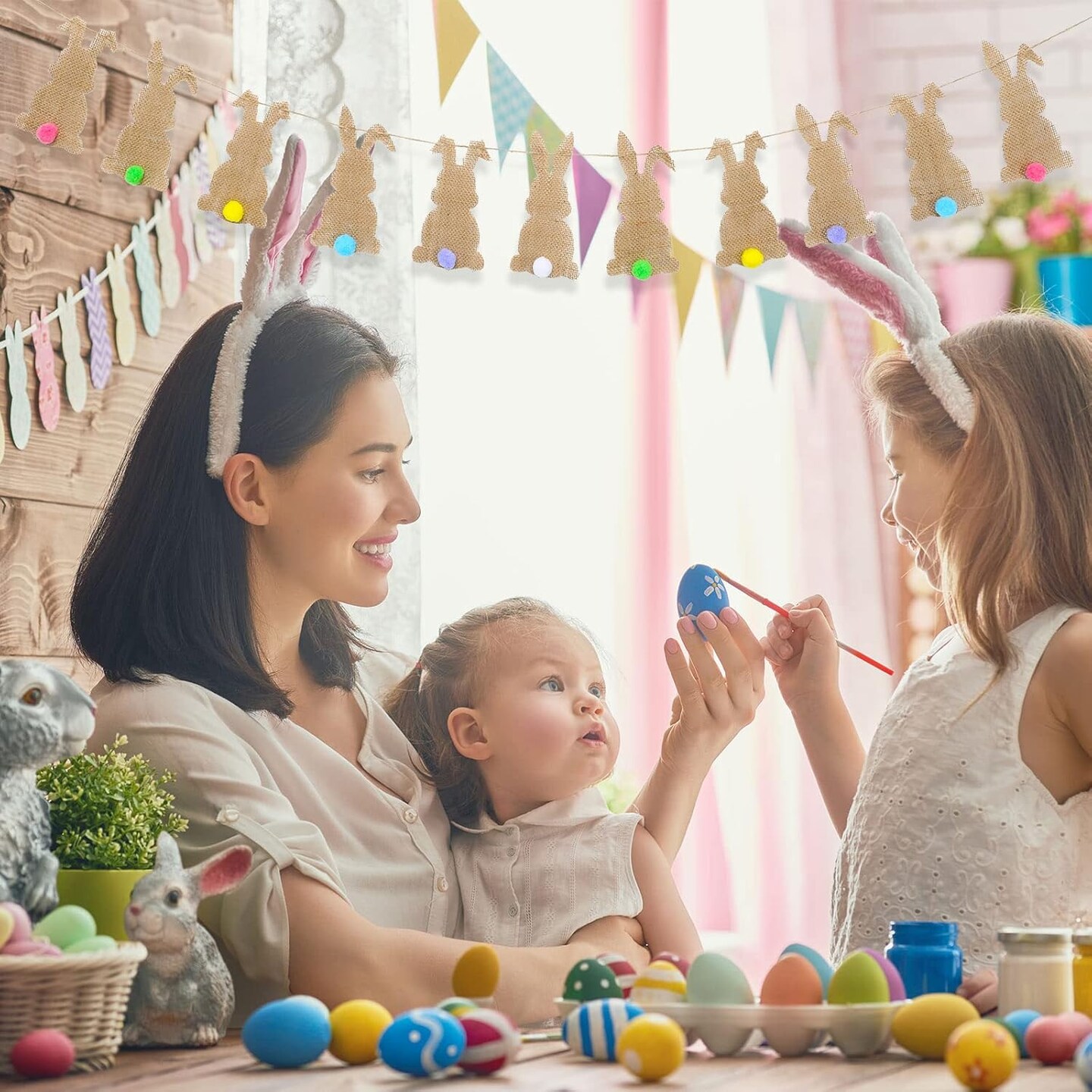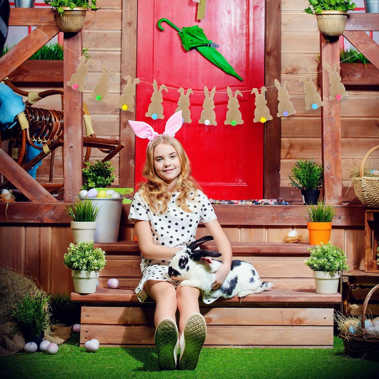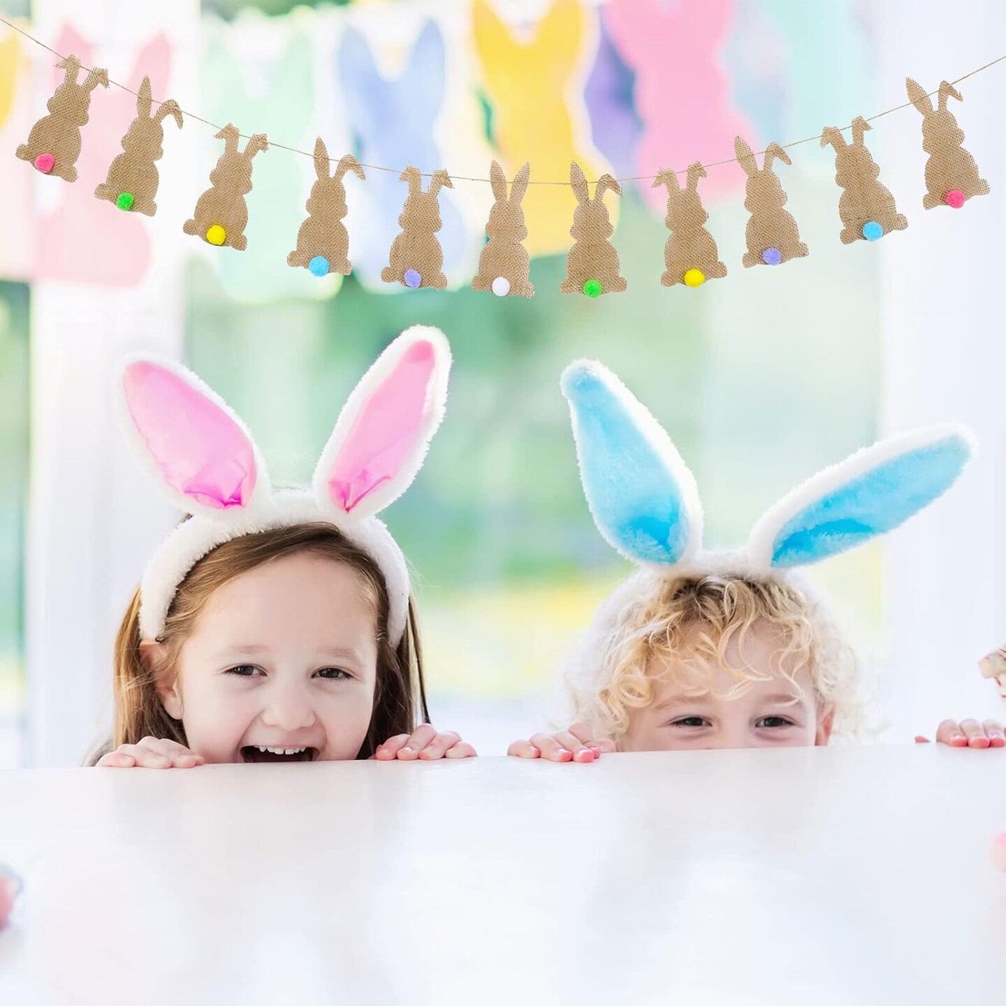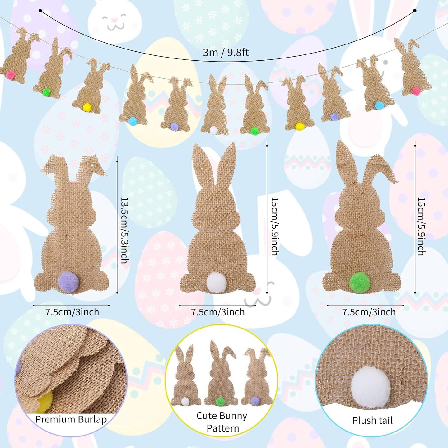 Easter Bunny Felt Banner – 11-Piece Pre-Assembled Colorful Tail Garland for Home & Party Decor