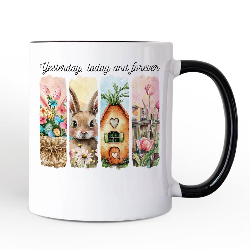 Easter Bunny Floral Brushstroke Mug, Spring Pastel Coquette Gift