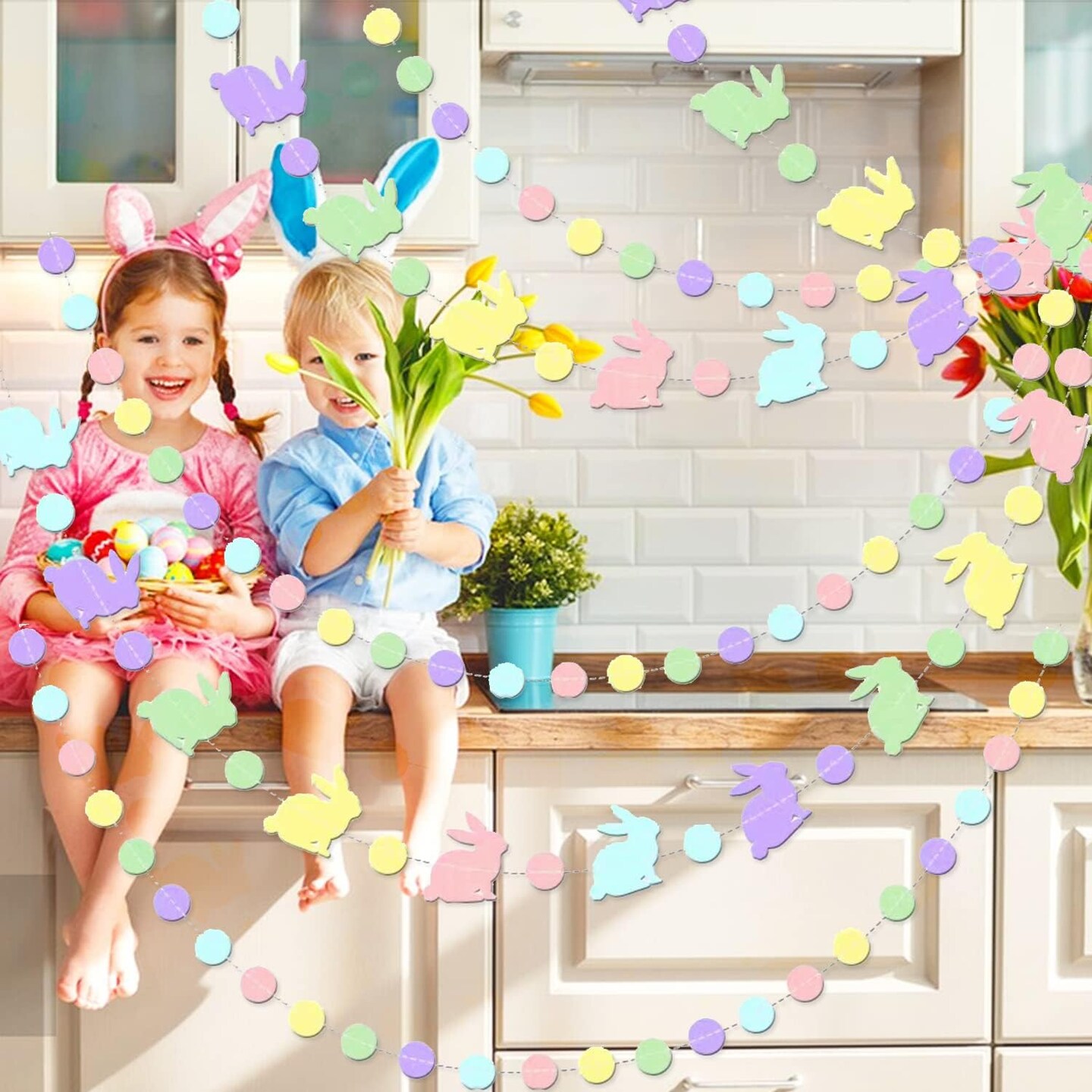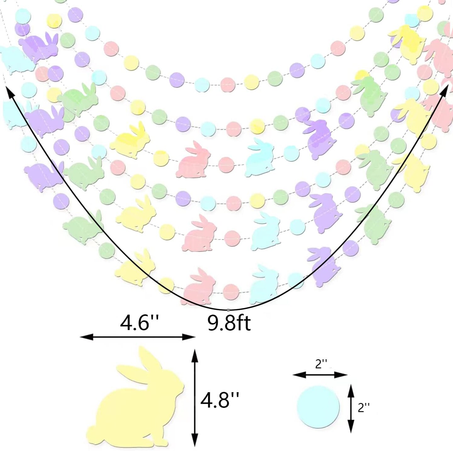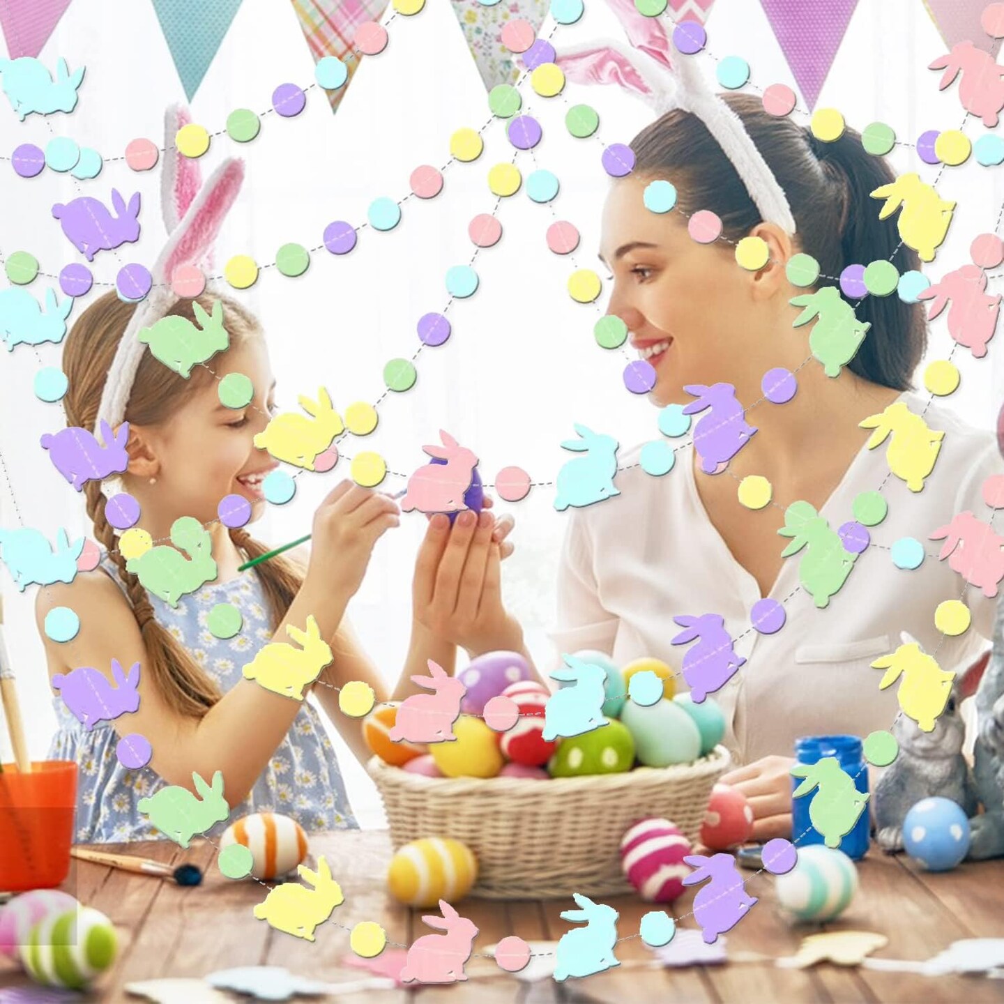Easter Bunny Garland Banner – Colorful Rabbit Hanging Decorations for Happy Easter Day, Indoor Outdoor Garden, Party & Home Decor