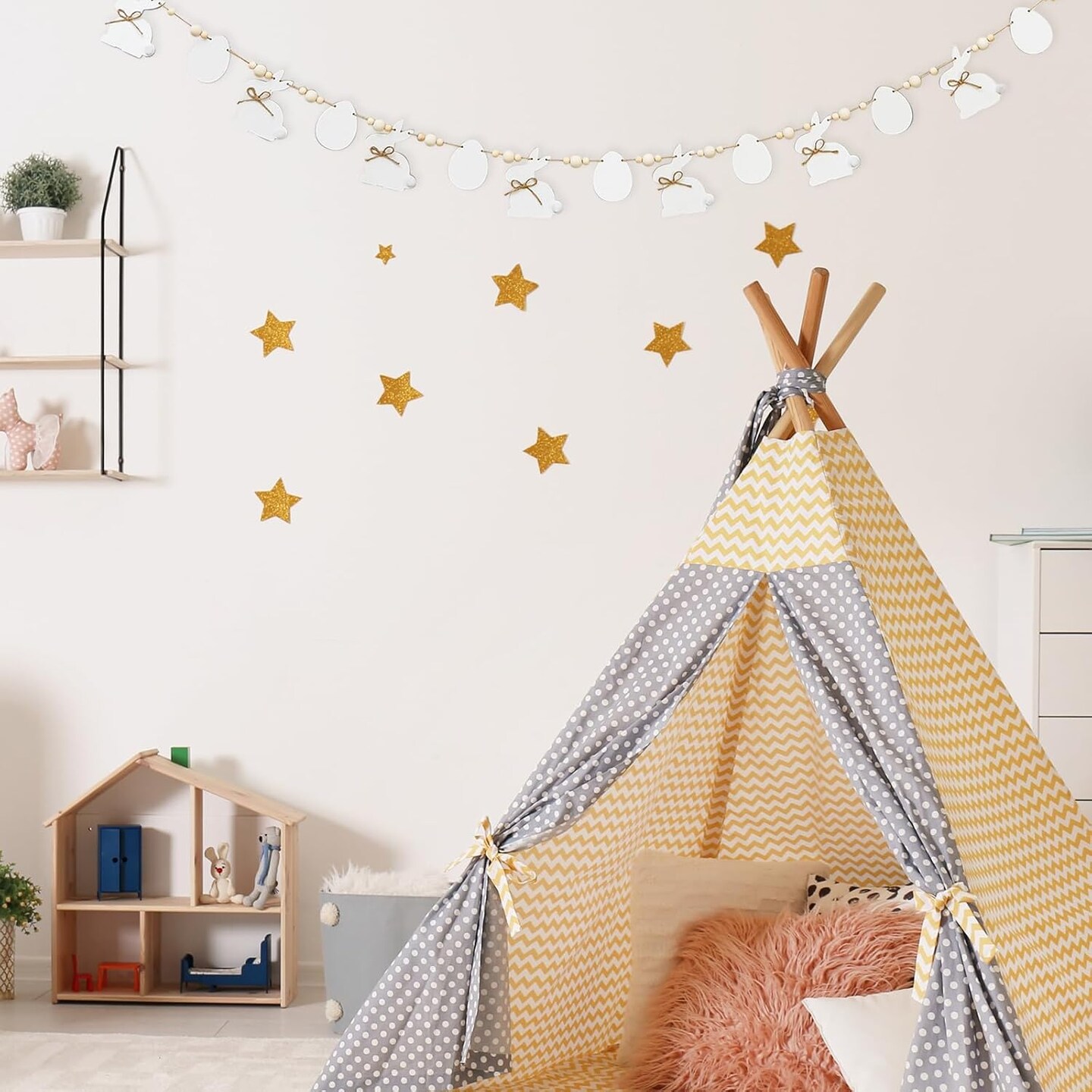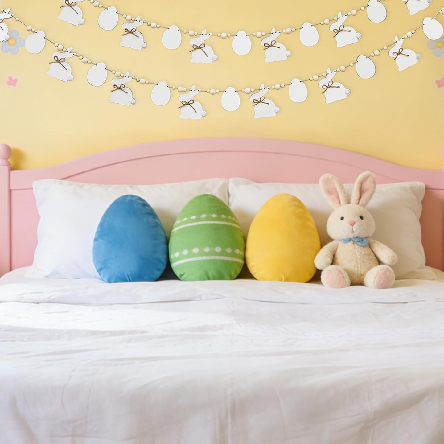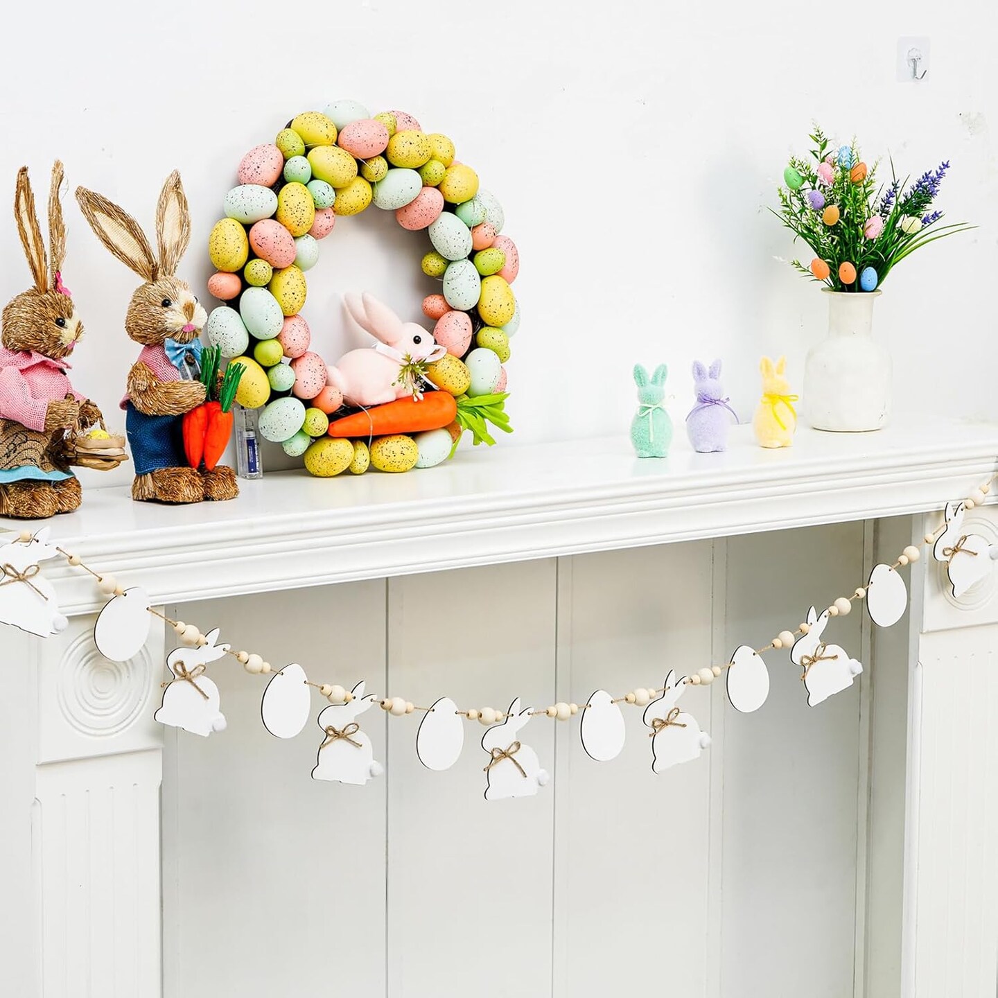 Easter Bunny Garland with Wooden Beads – DIY Rustic Farmhouse Banner for Mantle, Fireplace, Wall & Spring Decor