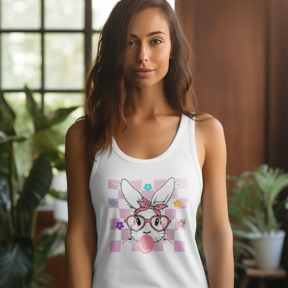 Easter Bunny Pink Checkered DTF Transfer - Direct-to-Film