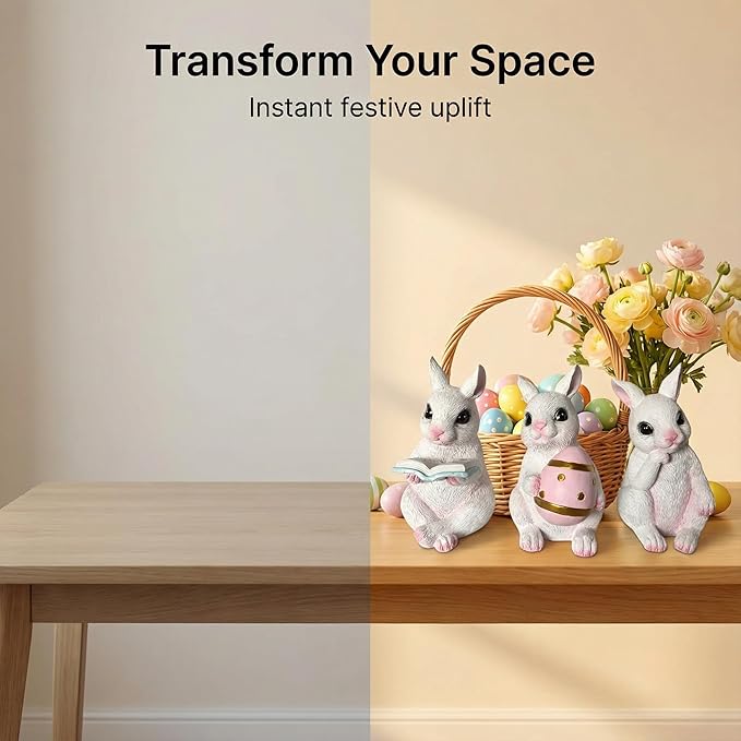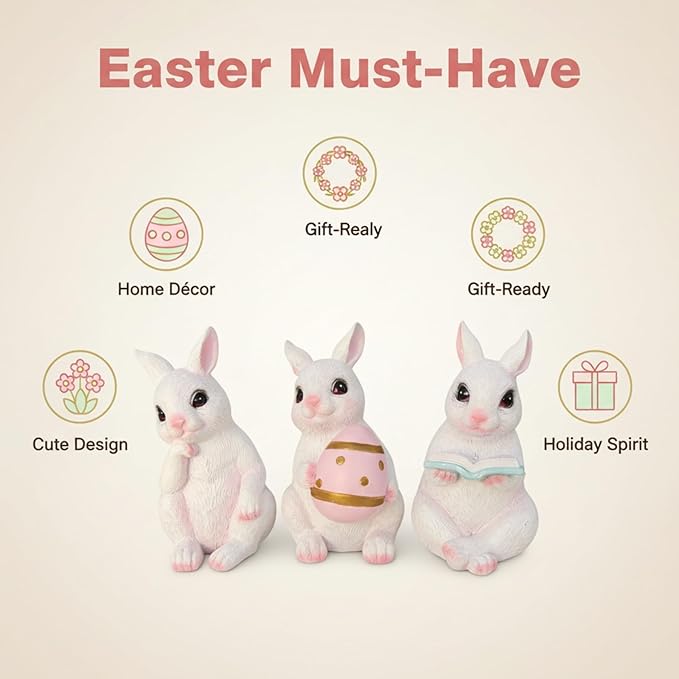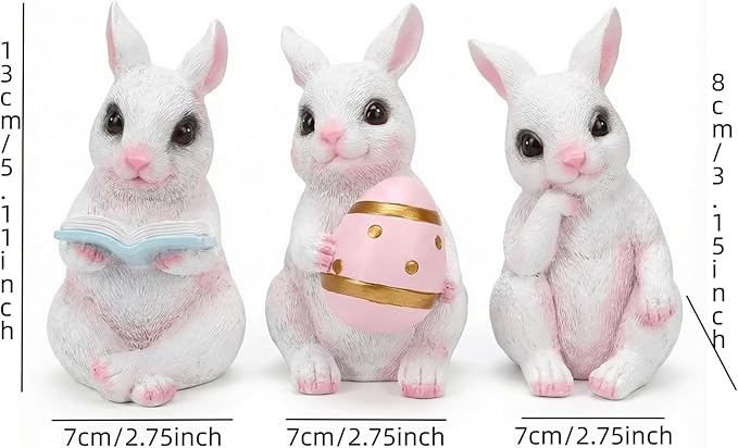 Easter Bunny Statue, Spring Tabletop Decoration, Cute Rabbit Figurine for Indoor Outdoor Easter Decor (Bunny 3 PCS)