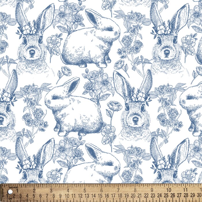 Easter Bunny Toile Cotton Fabric | By the Yard | Sewing and Crafting | 44 inches wide