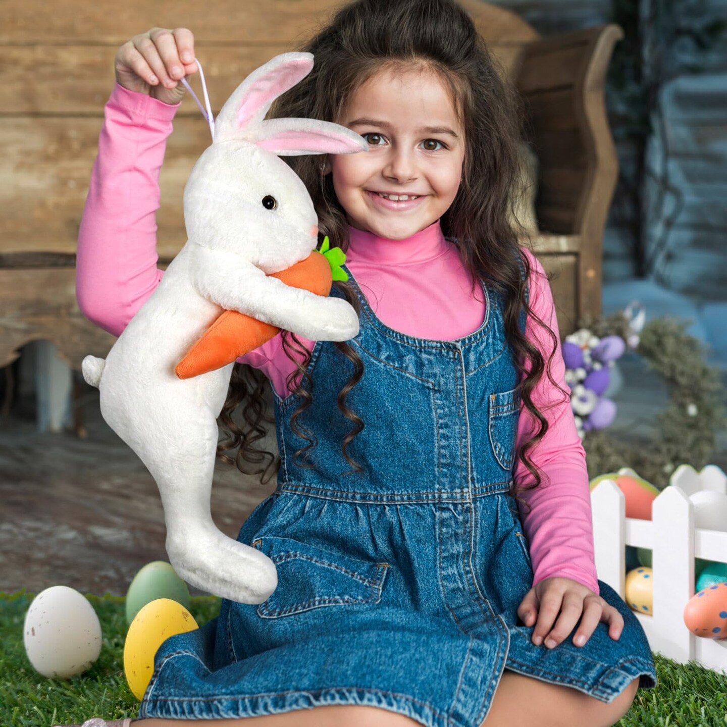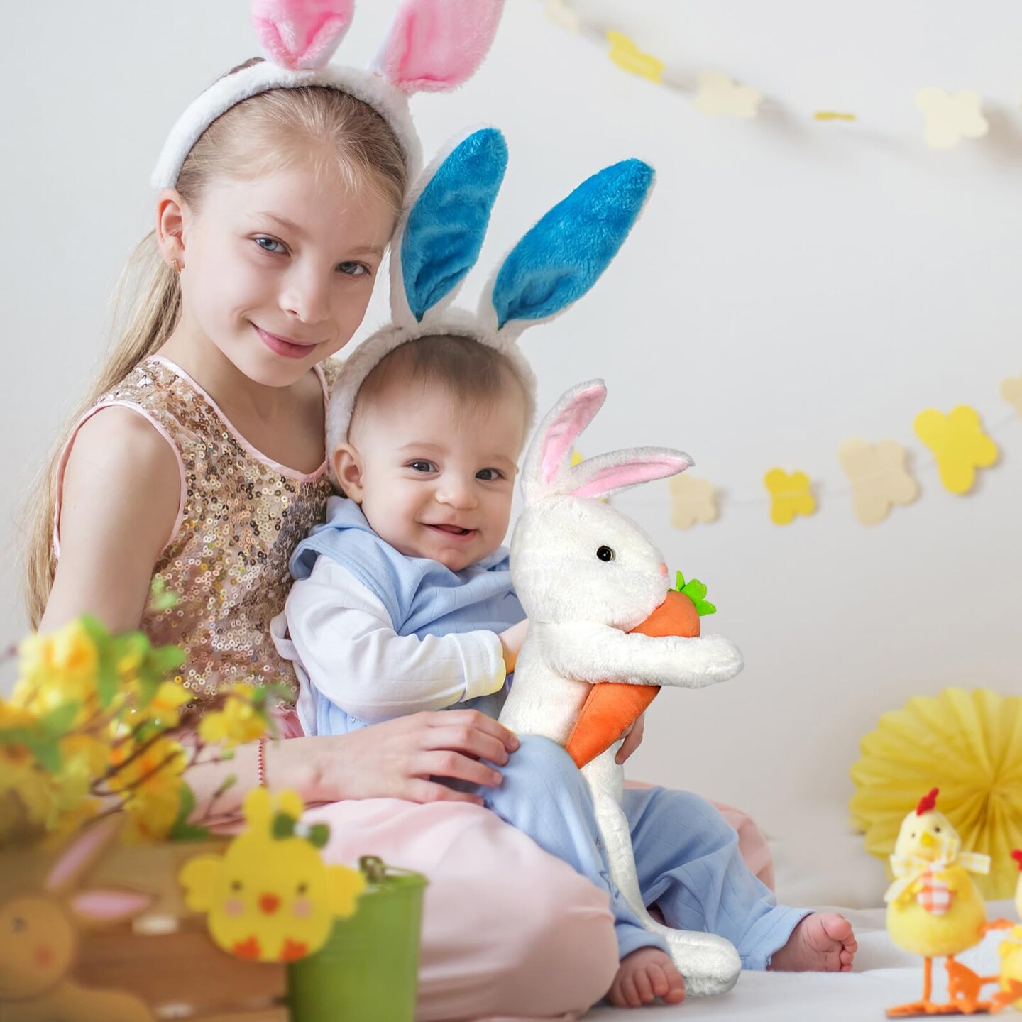 Easter Bunny Tree Topper Decorations,Spring Plush Rabbit Hugged Carrot for Tree Basket Stuffers Holiday Home Party Supplies Decor White