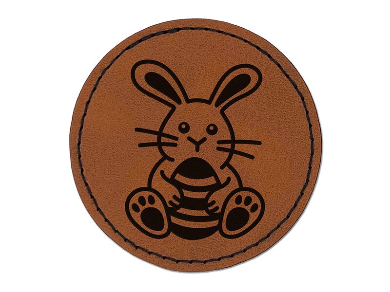 Easter Bunny with Egg Round Iron-On Engraved Faux Leather Patch Applique - 2.5"