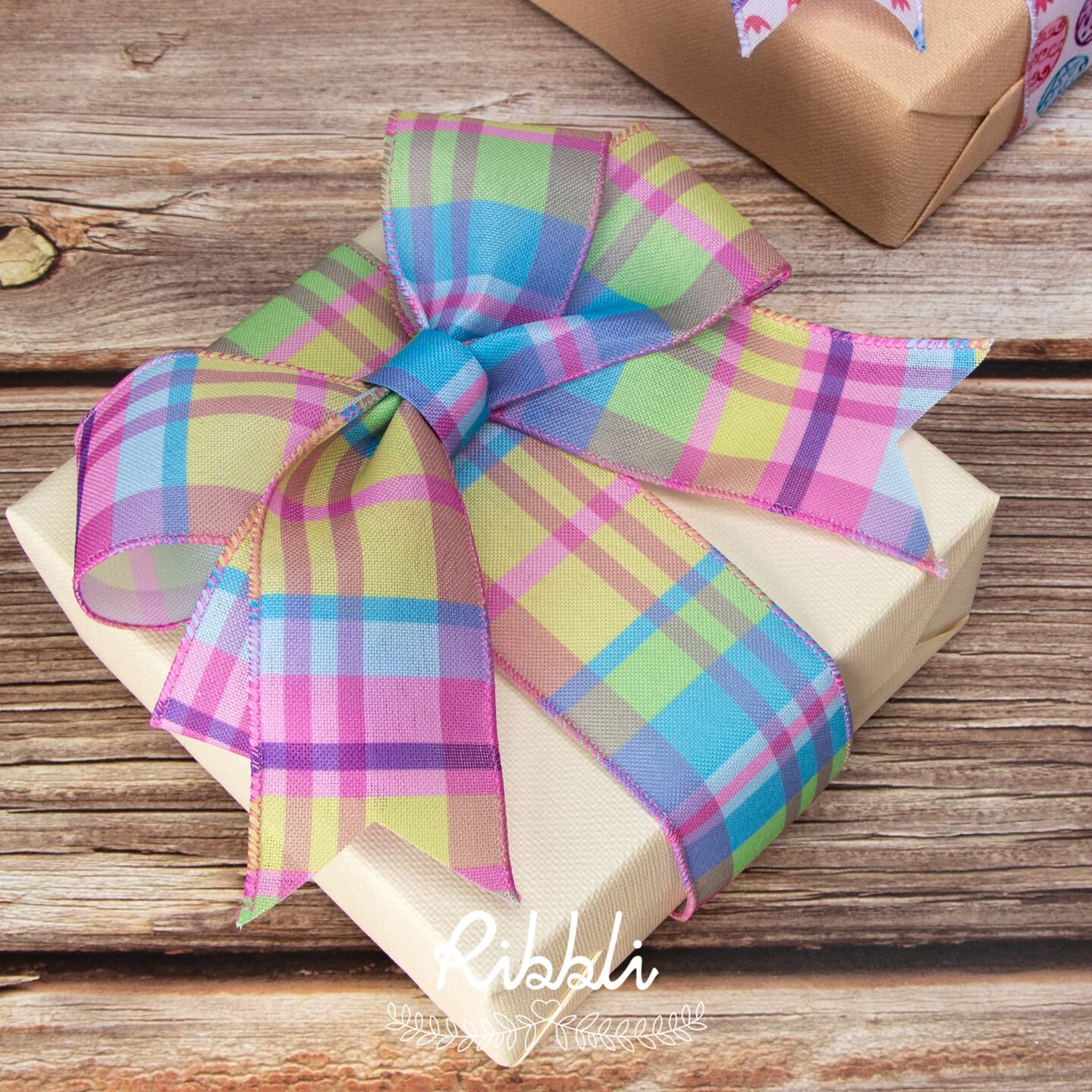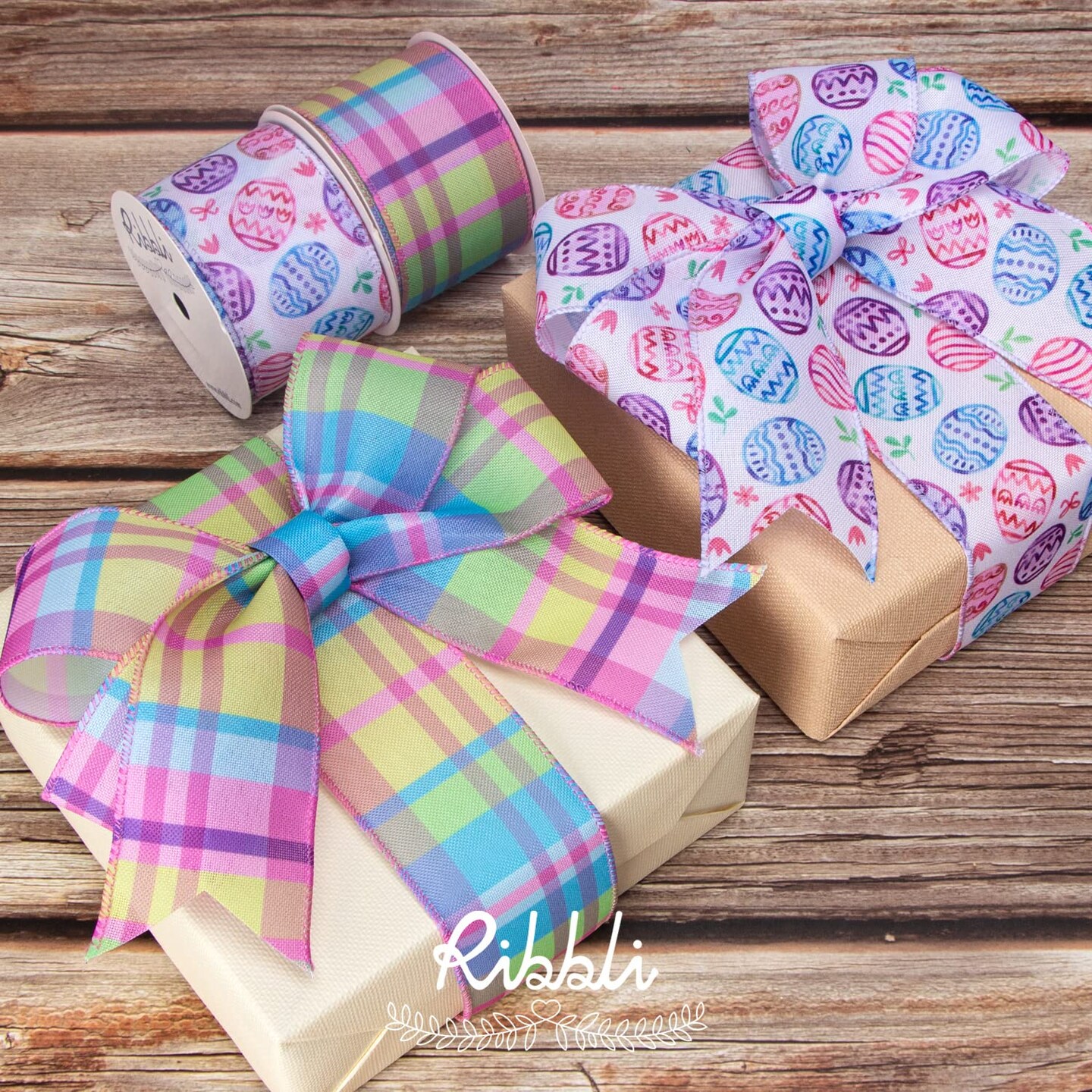 Easter Burlap Wired Ribbon,Colorful Easter Plaid 2 Inch x 10 Yard Spring Plaid Ribbon for Crafts,Big Bows,Easter Wreaths,Gift Wrapping,Easter Decoration