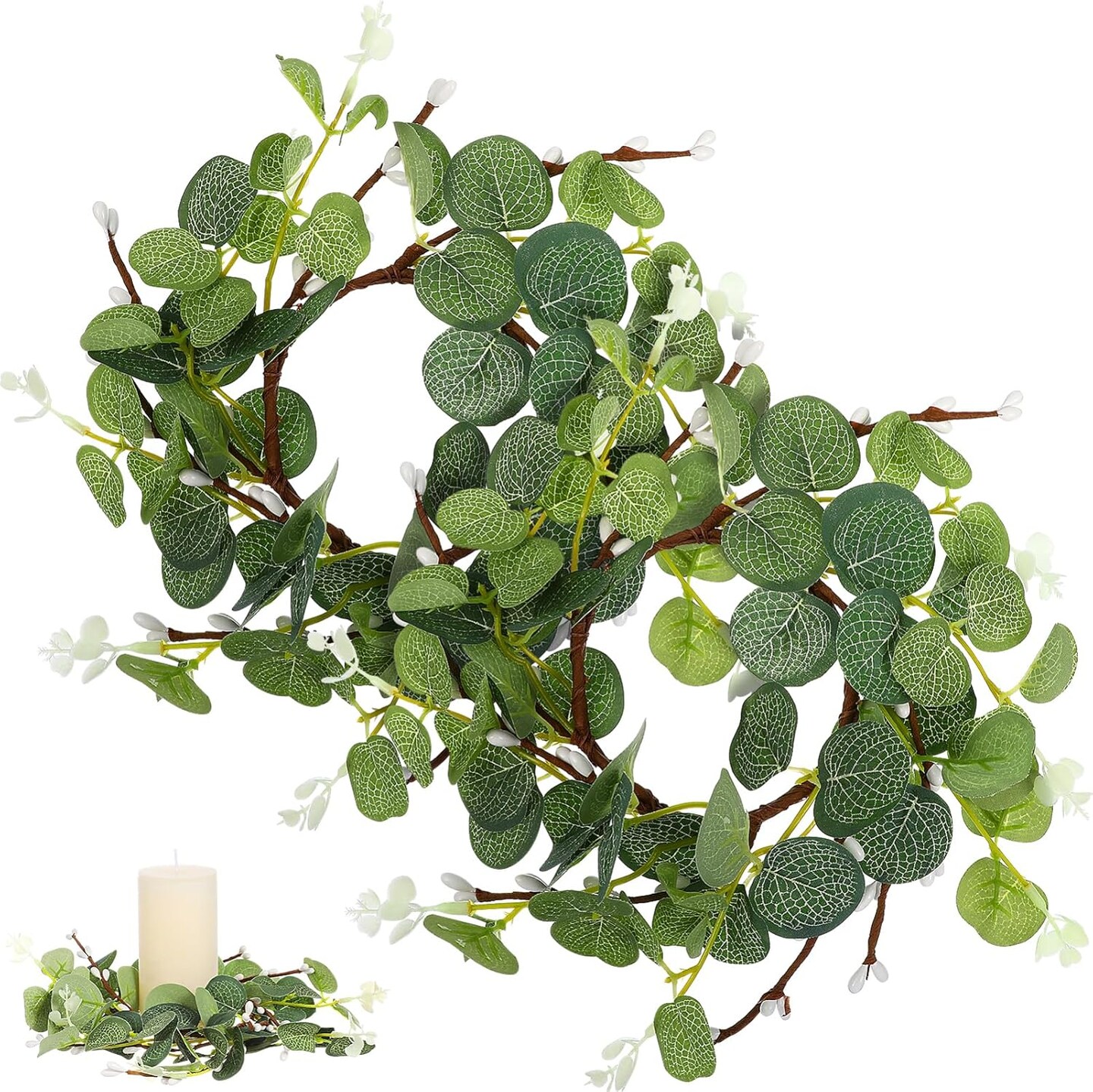 Easter Candle Rings 2pcs Artificial Eucalyptus Leaf Wreaths for Spring Home Decor