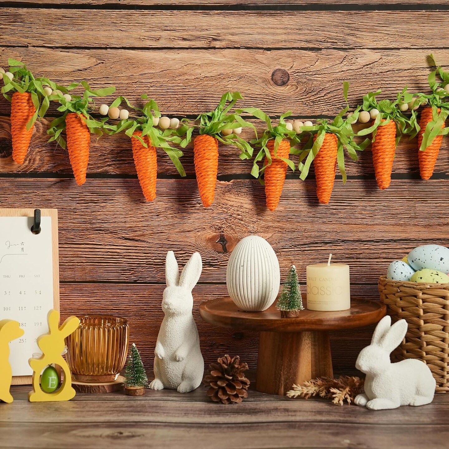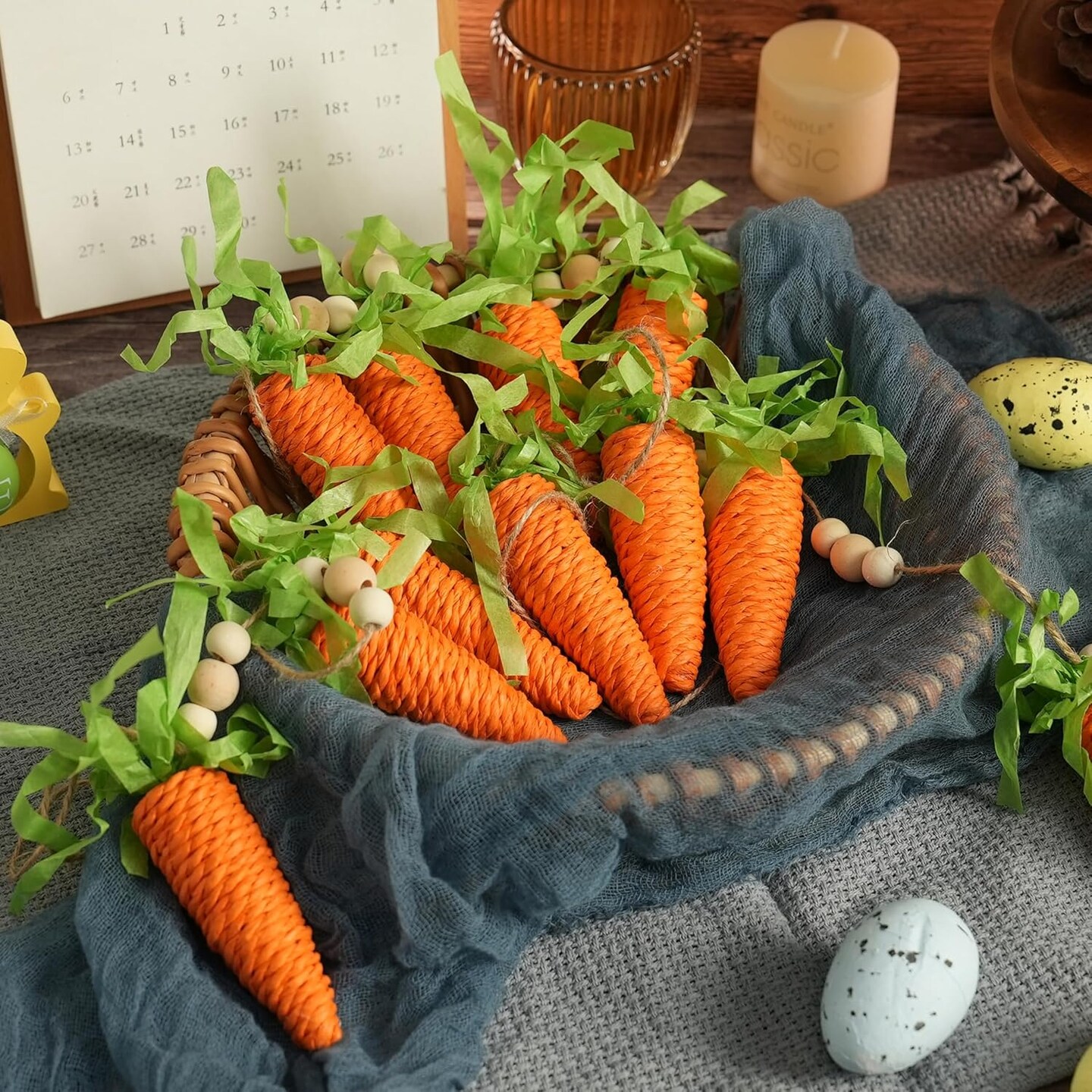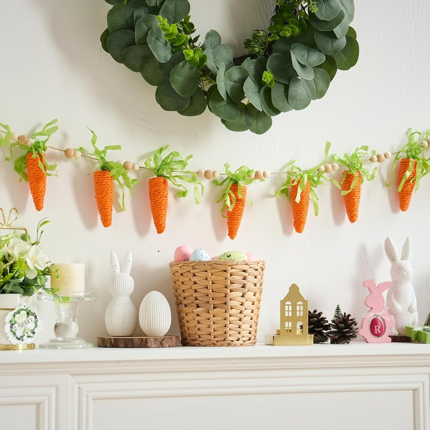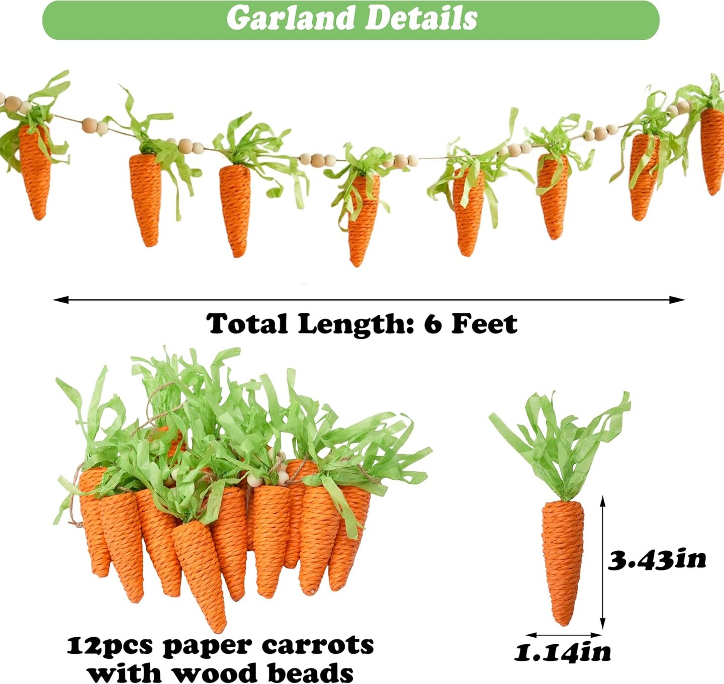 Easter Carrot Garland Decor, 12 Carrots Ornament for Mantel Decorations, 6FT Hanging Artificial Carrots Garland Carrot Banner for Easter Party Fireplace