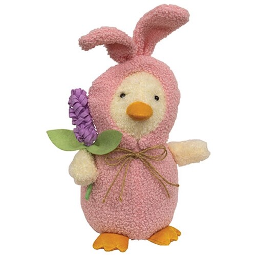 Easter Chick Plush Bunny Outfit Decor Weighted Base 14.5 Inch Shelf Accent