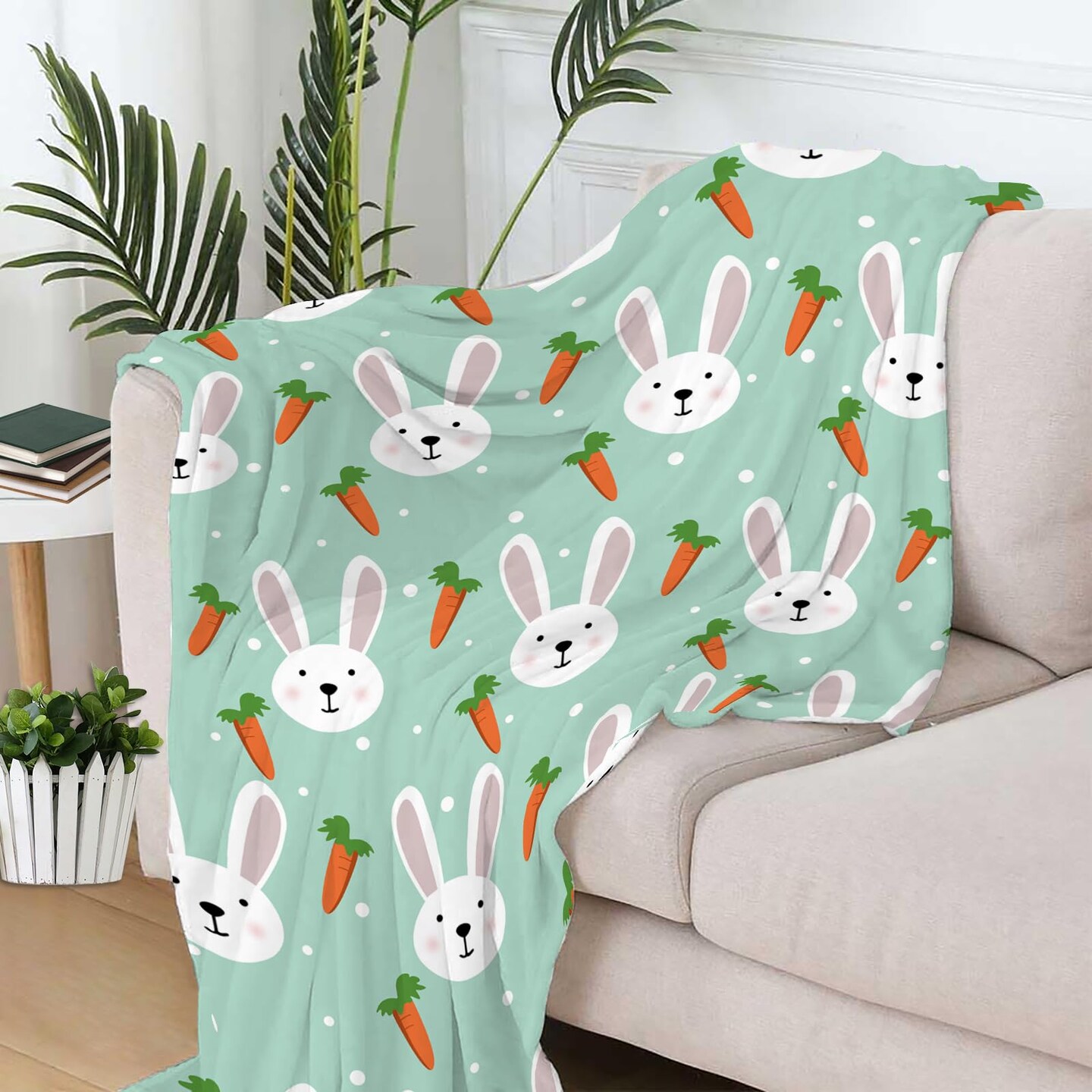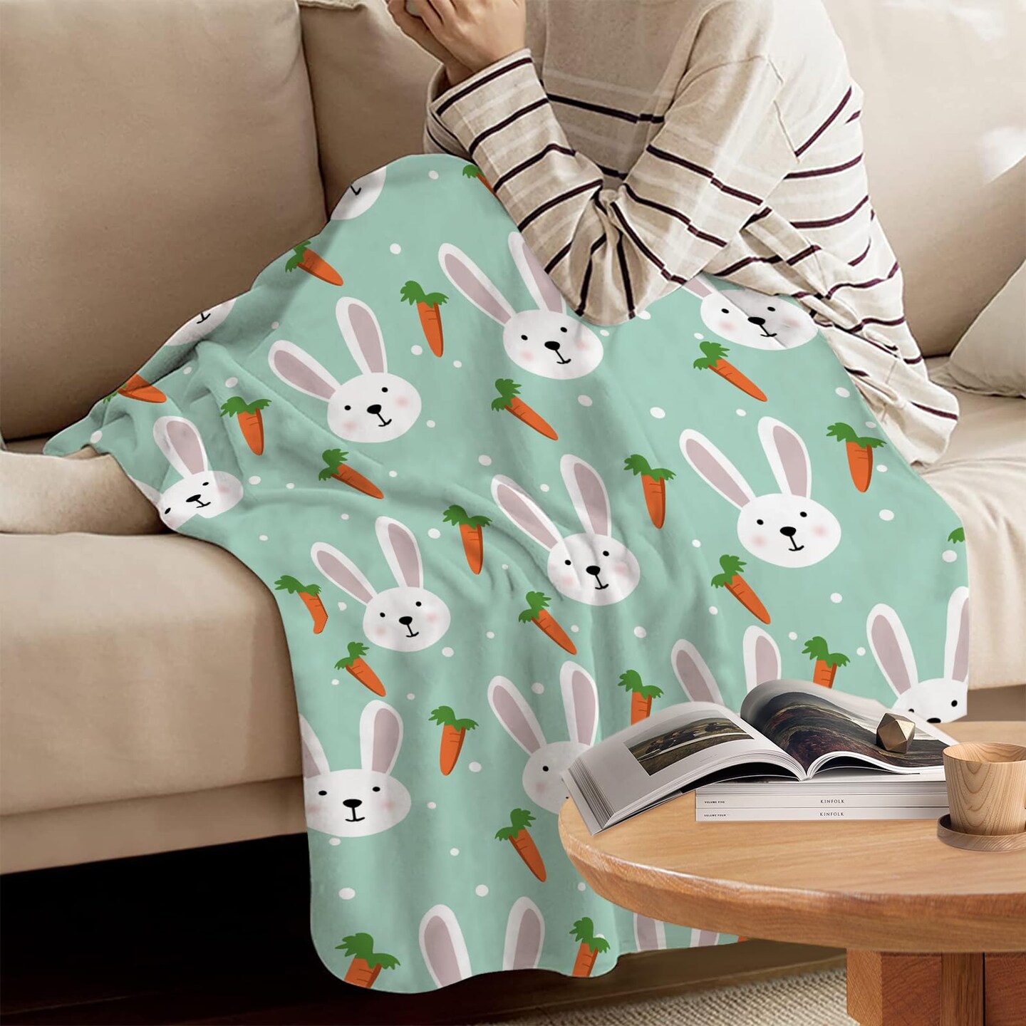 Easter Day Rabbit and Carrot Pattern Throw Blanket Soft Warm Cozy Lightweight Decorative Blanket for Couch, Bed, Sofa, Travel 40x50 inch