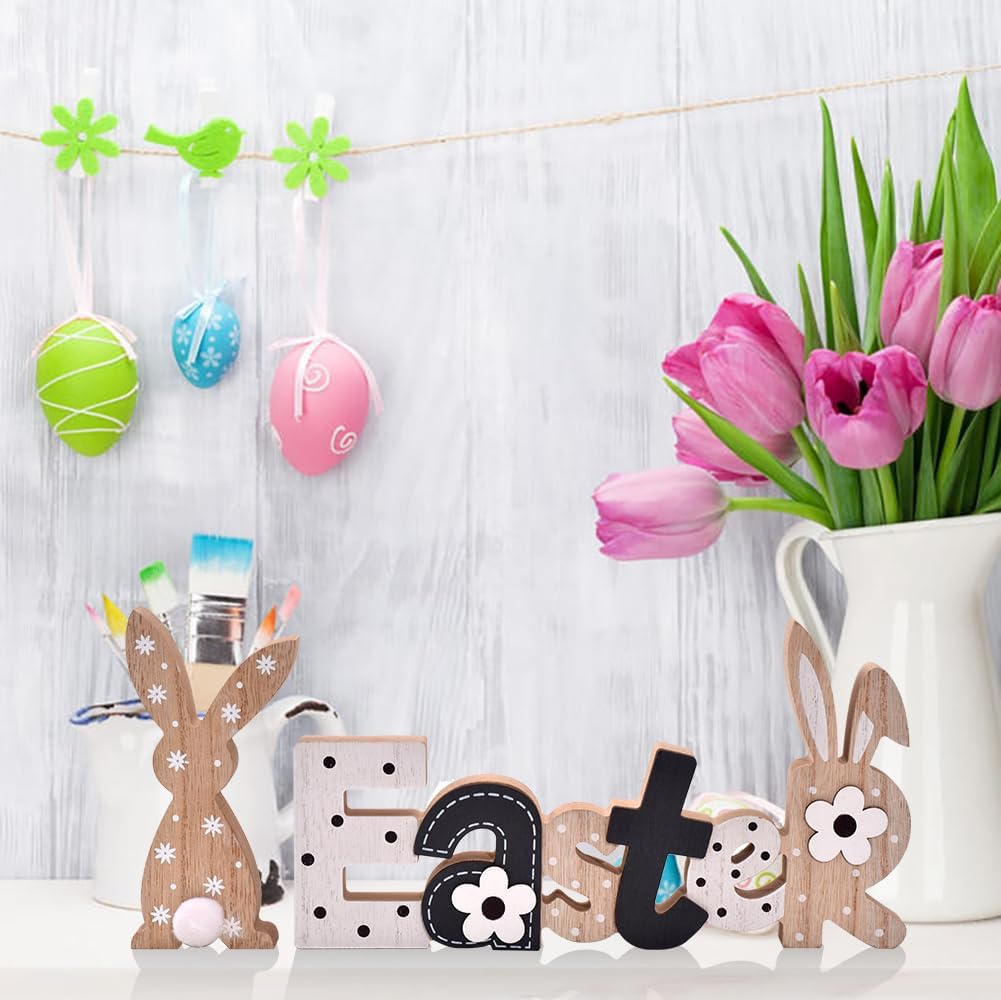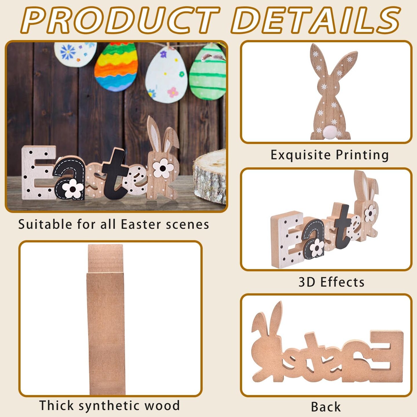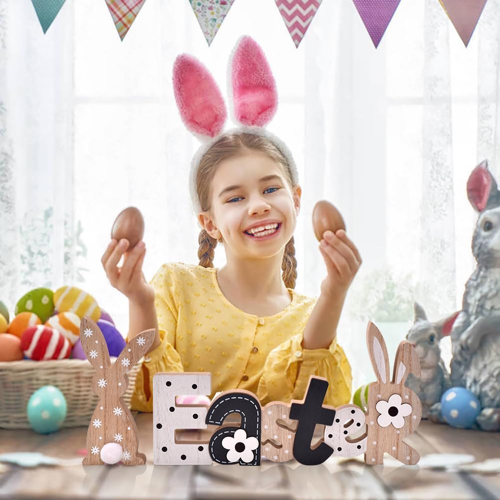 Easter Decoration Sign Blocks, 2-PCs Wooden Easter Bunny Tabletop Decor