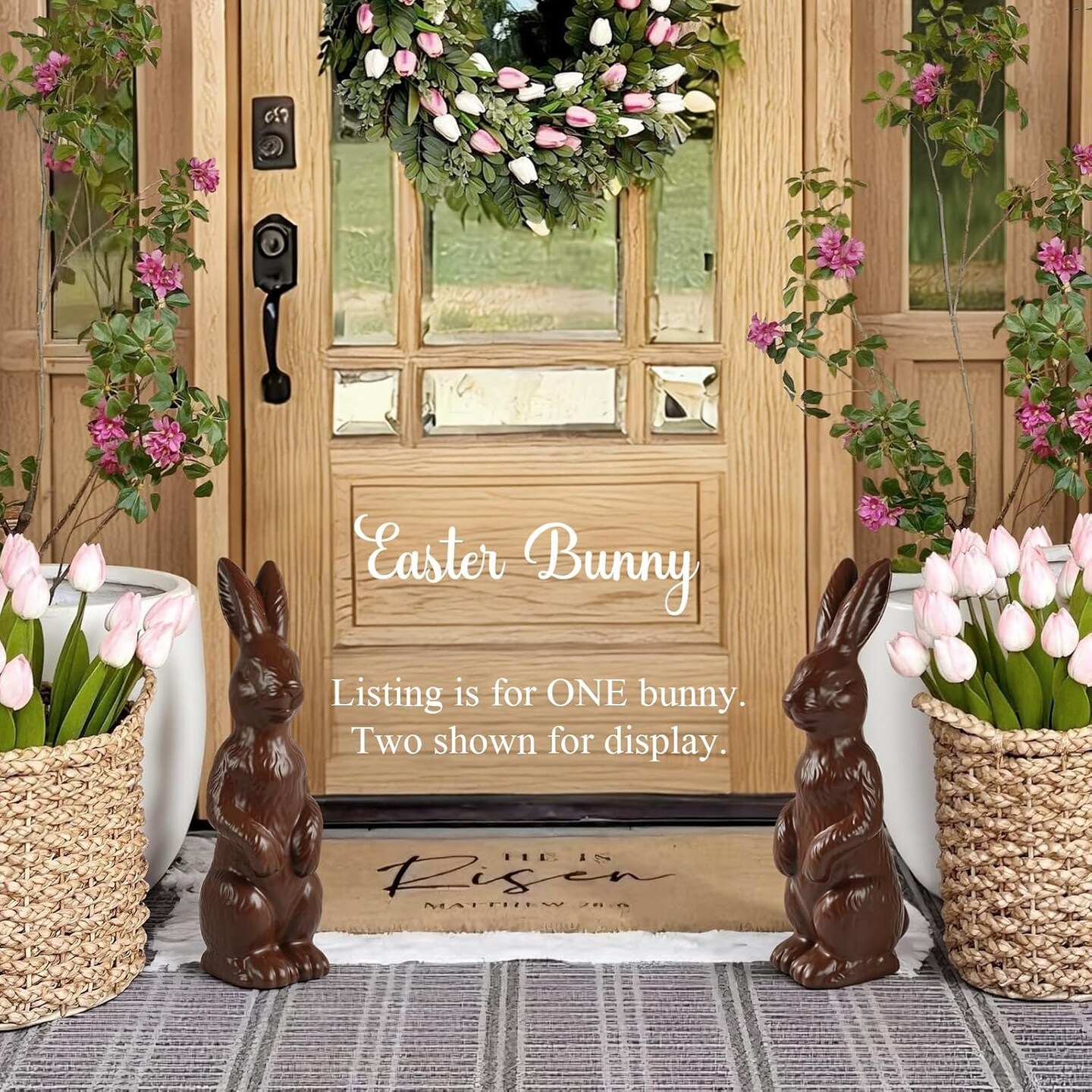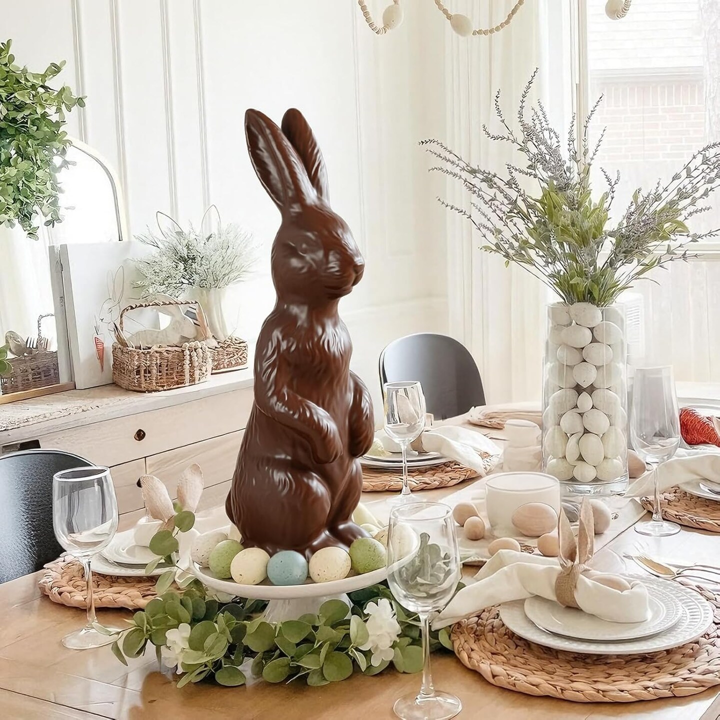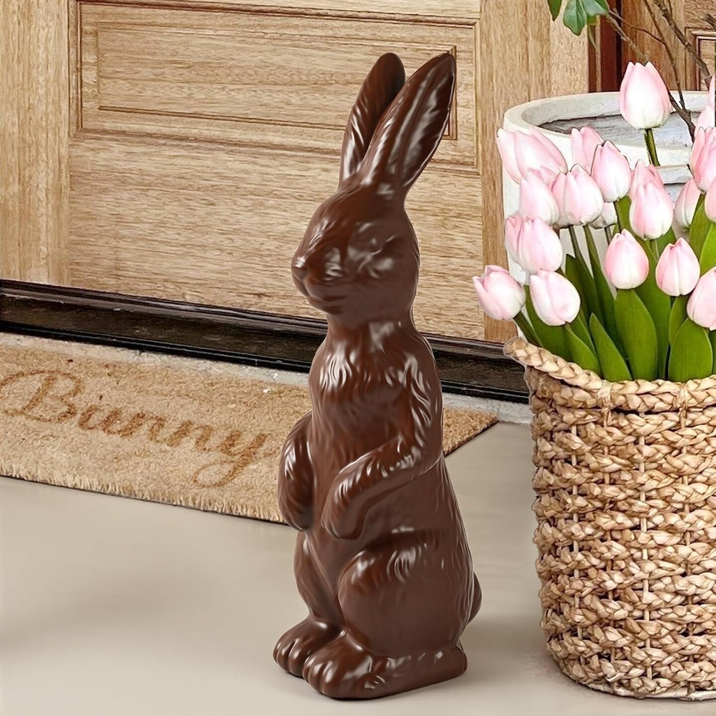 Easter Decorations - 14.5" Easter Bunny Figurine - Easter Decorations for Home - Standing Ceramic Easter Bunny Decor for Mantel Tabletop Porch Lawn Yard Spring Home Indoor Outdoor