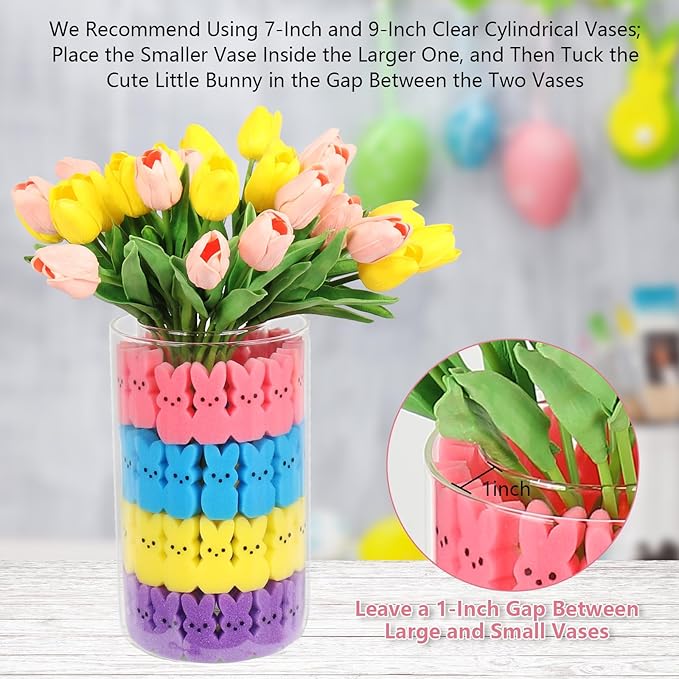 Easter Decorations, 64pcs Cute Sponge Bunnies Vase Filler, Spring Indoor Decor for Tiered Tray and Table Decorations
