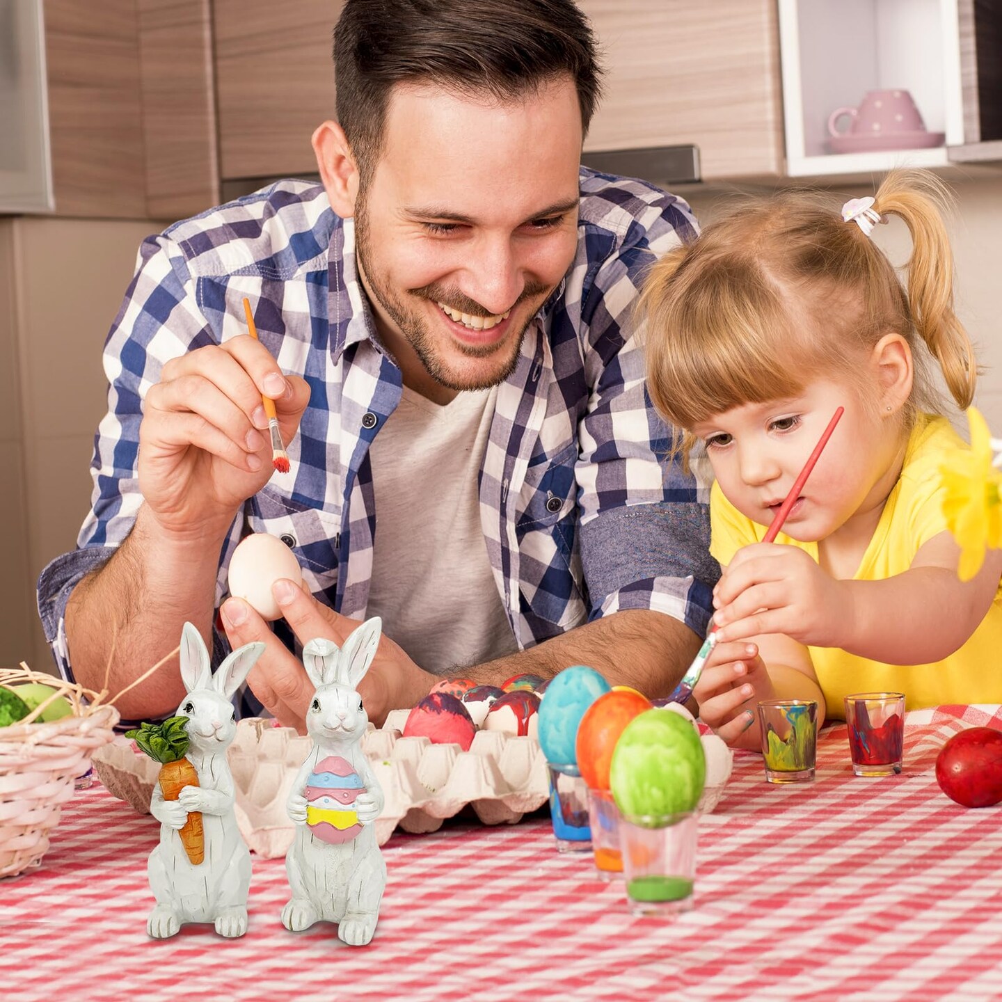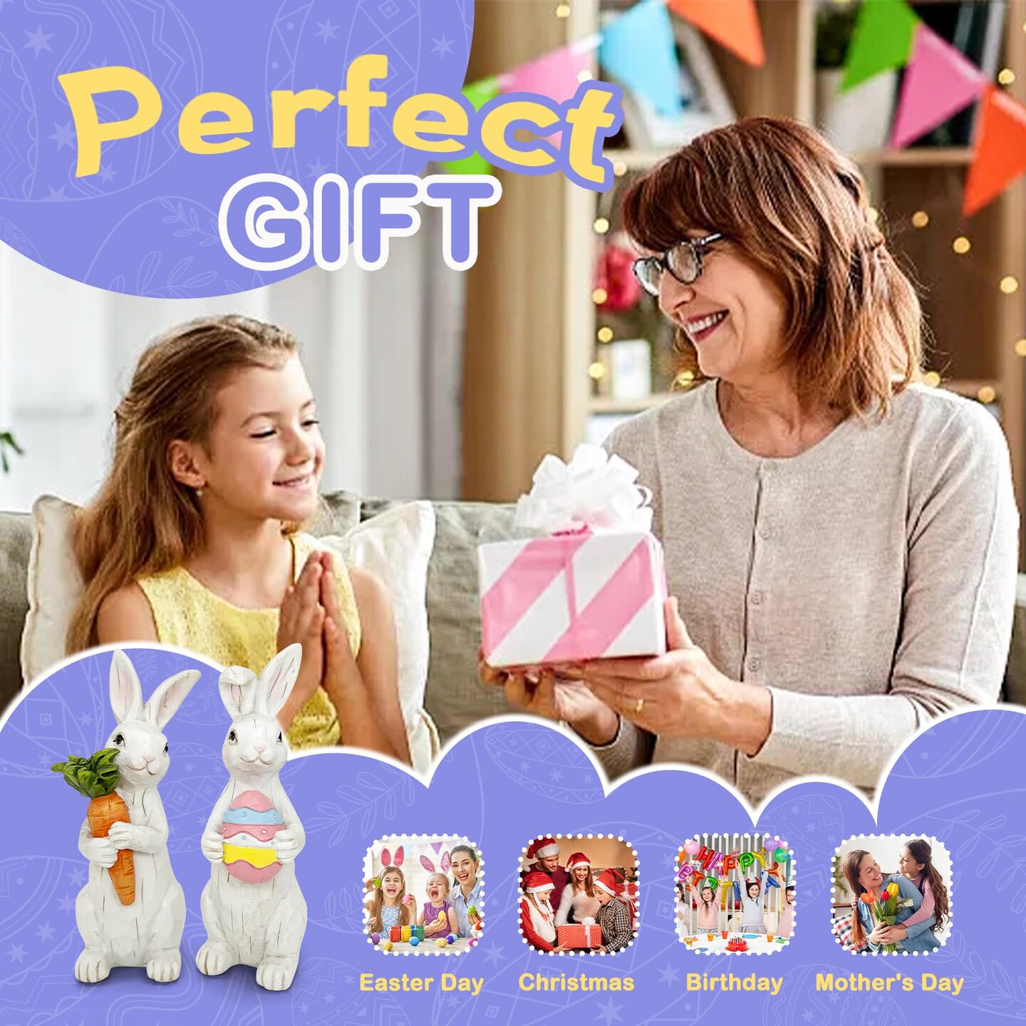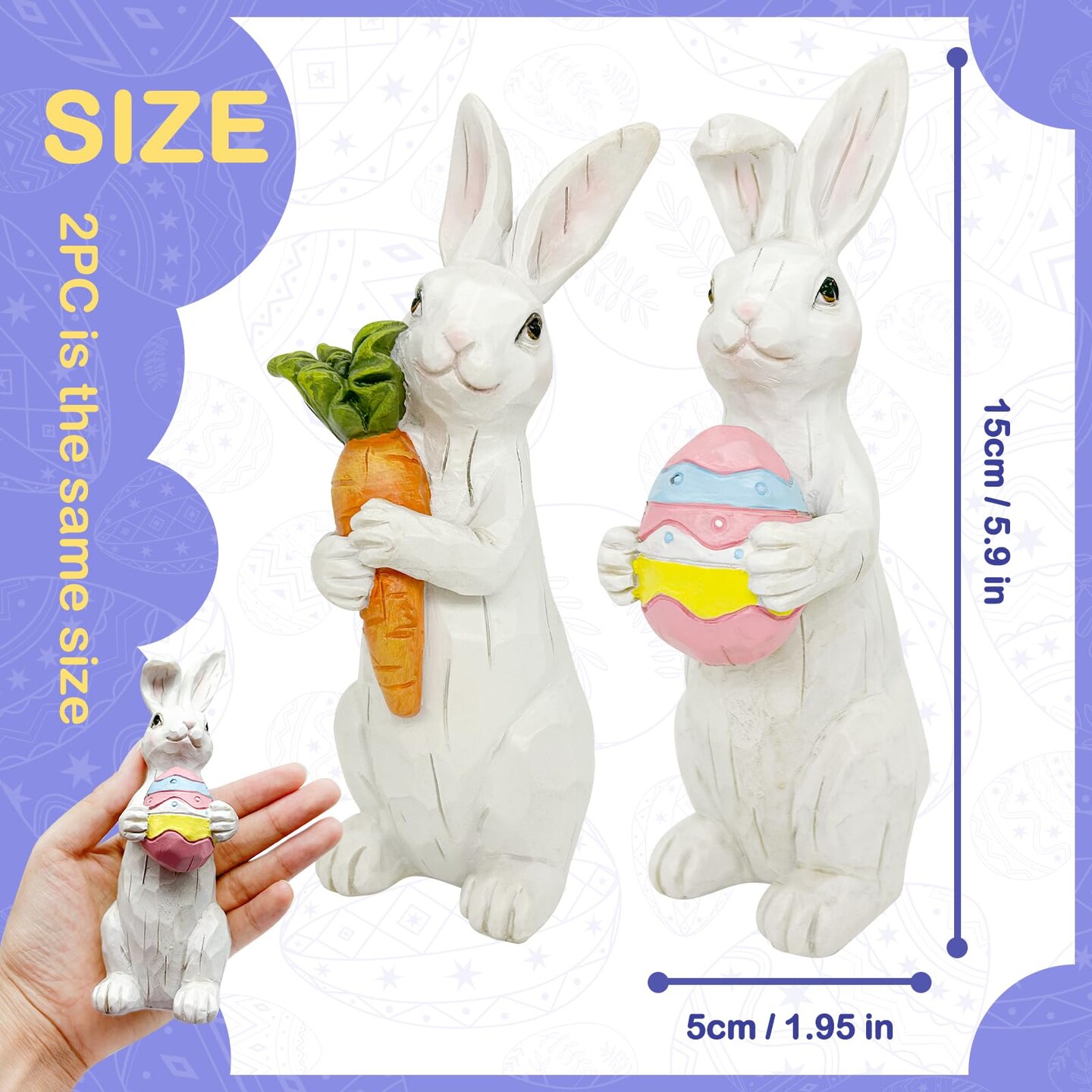 Easter Decorations - Easter Bunny Decor Spring Decorations Resin Rabbits Statues with Carrot and Egg for Home Tabletop Centerpiece Indoor Gifts