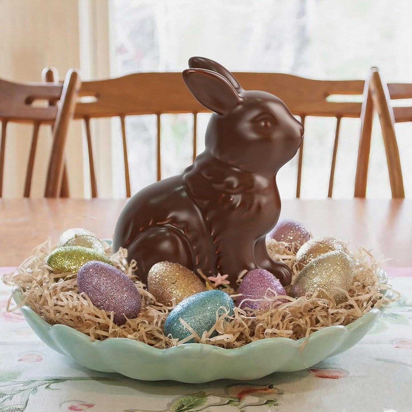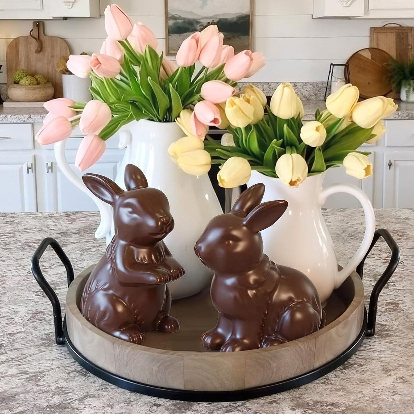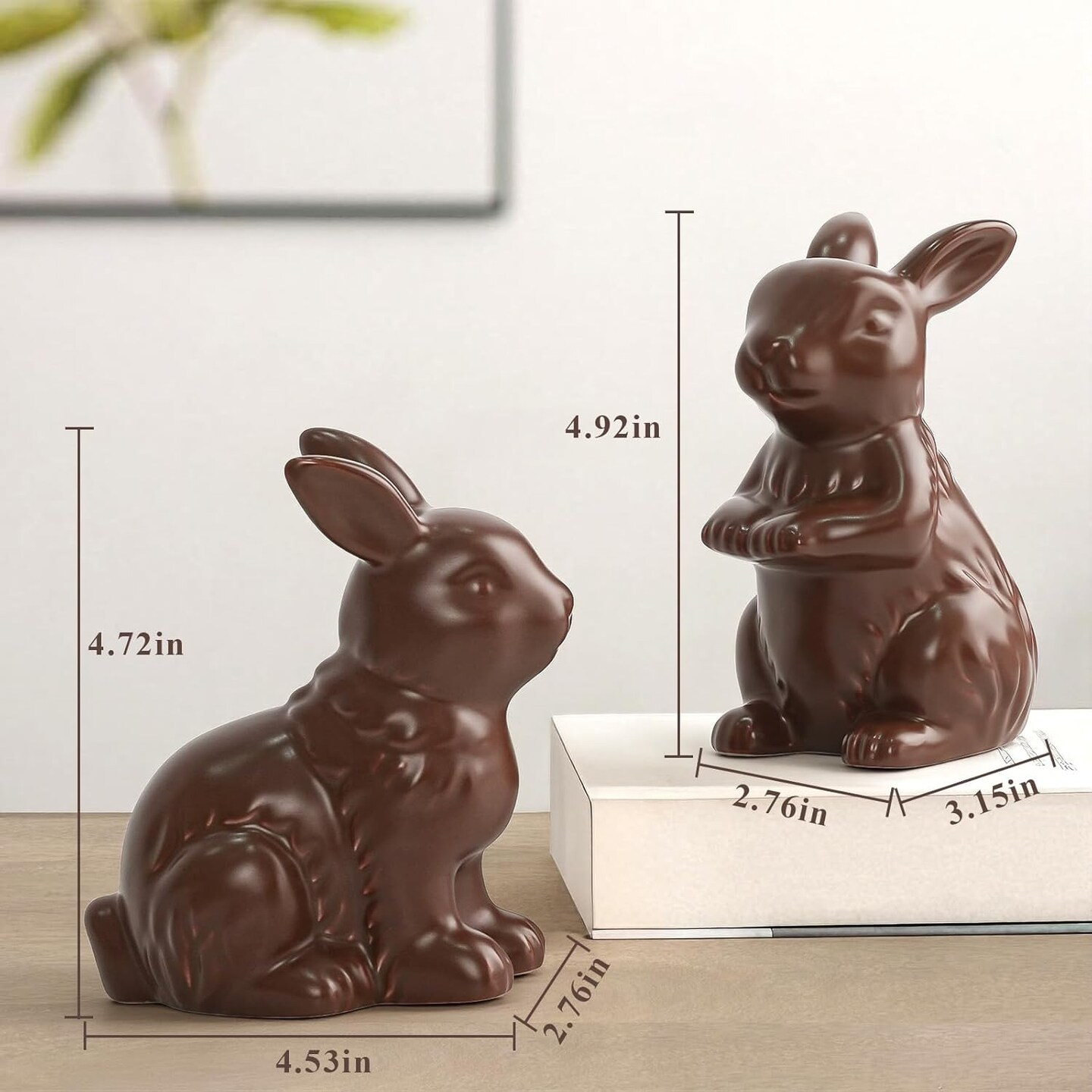 Easter Decorations – Set of 2 Chocolate Ceramic Bunny Figurines, Modern Easter Ornaments for Home, Elegant Table Centerpiece, Mantel, Living Room, Bedroom & Office Décor