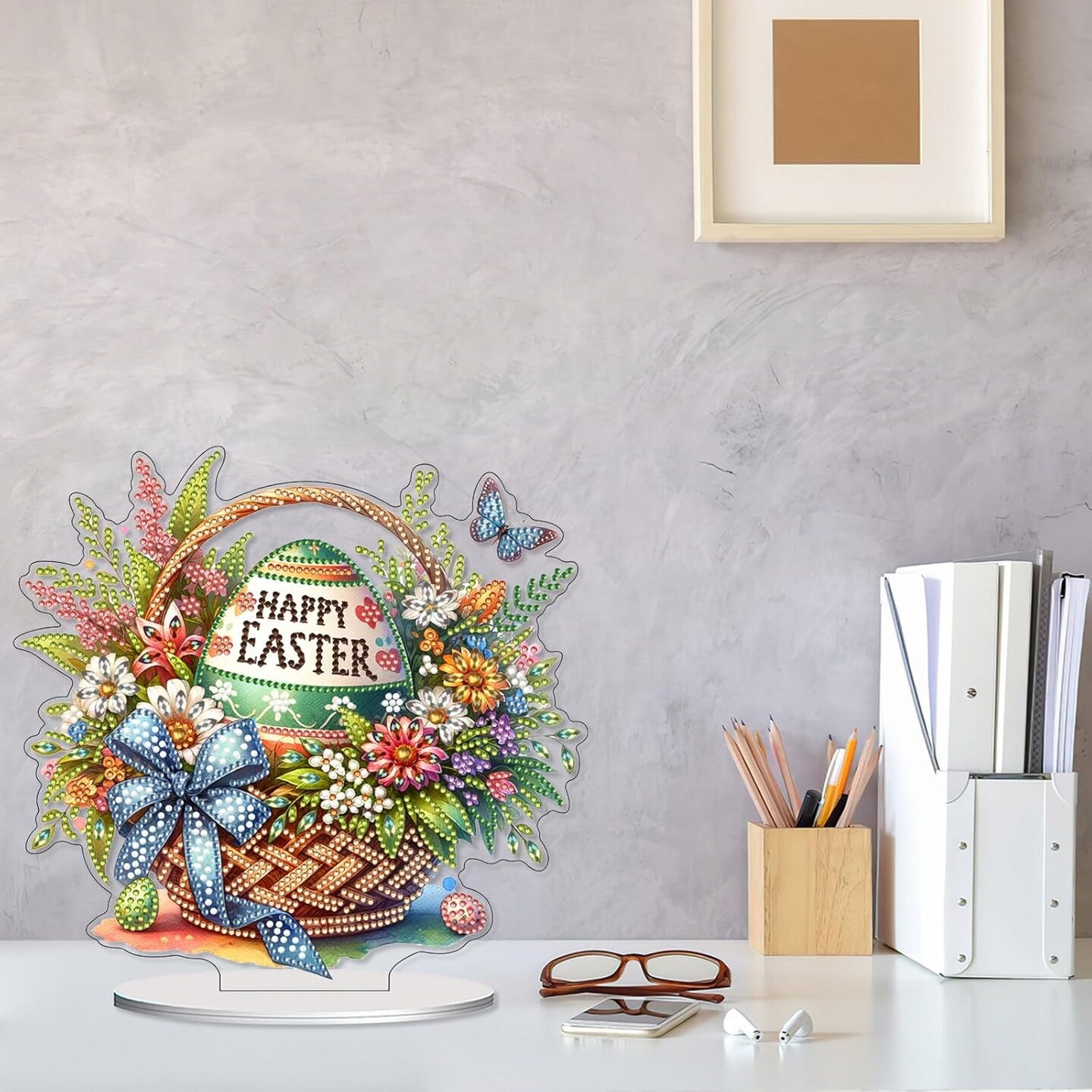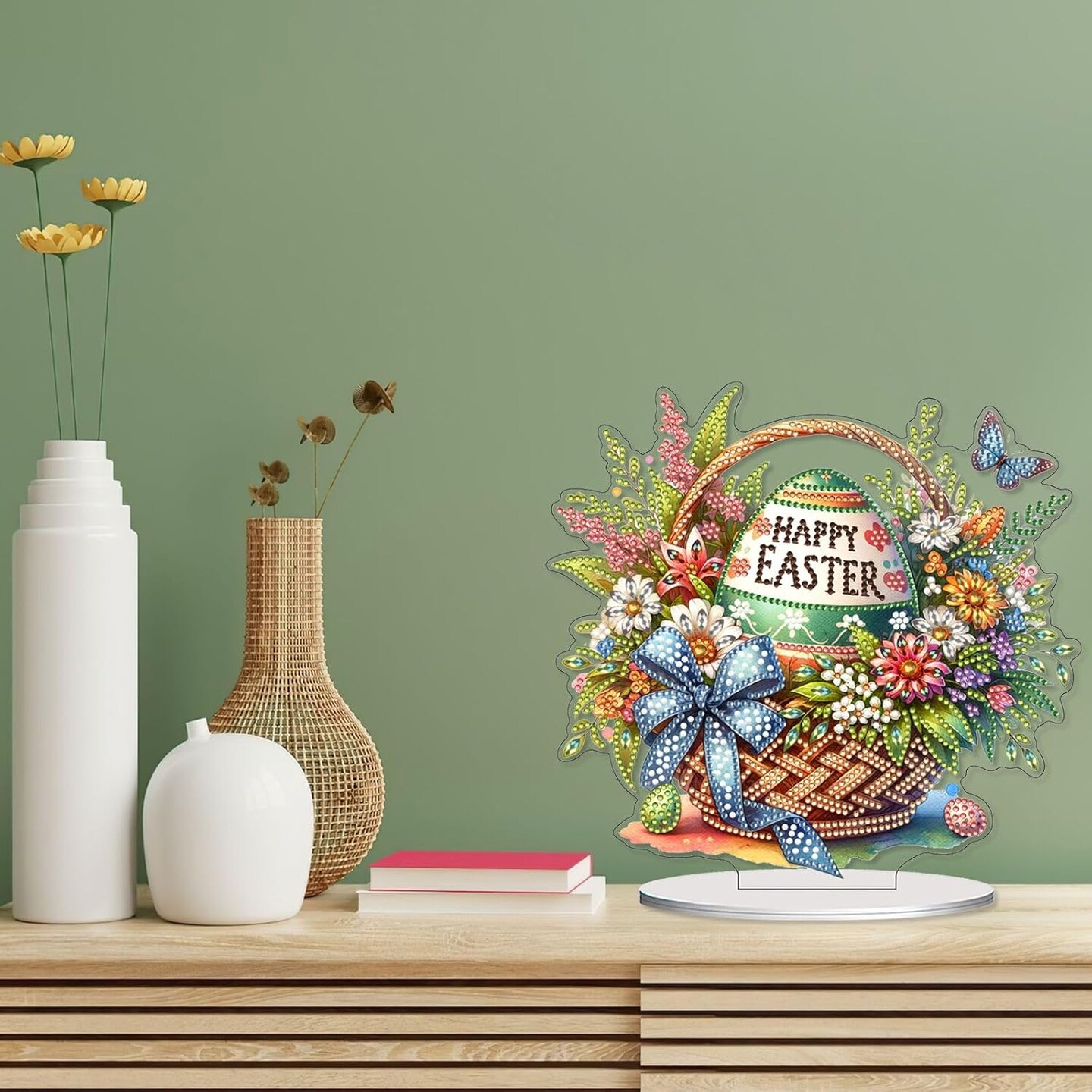 Easter Diamond Art Tabletop – DIY Double-Sided Special Shape Desktop Ornament, Basket of Easter Eggs 2-Pack
