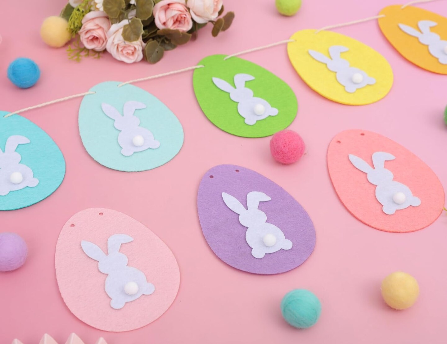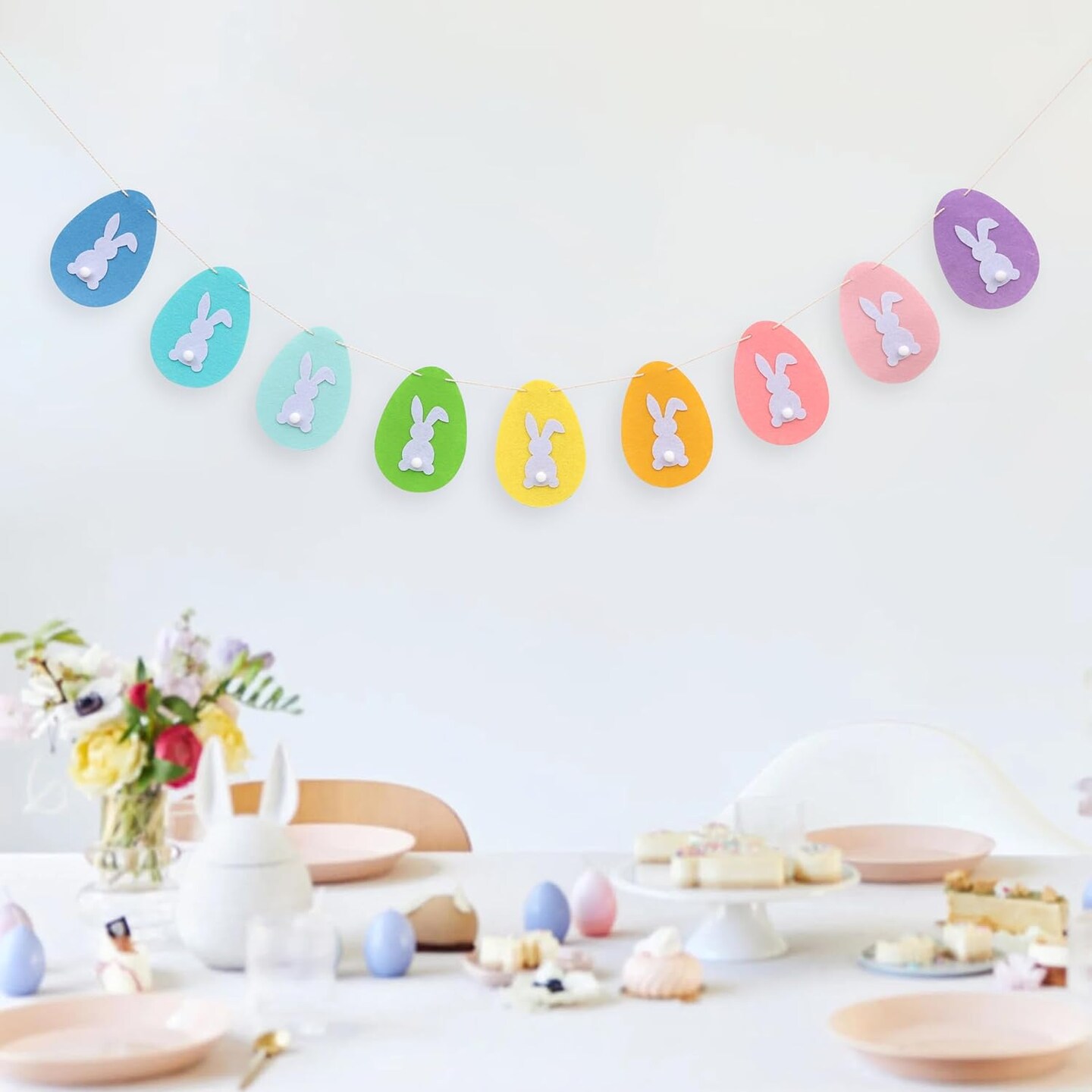 Easter Felt Bunny & Egg Garland – Spring Mantel & Wall Decoration