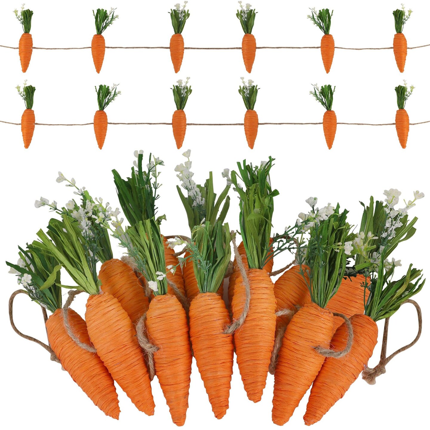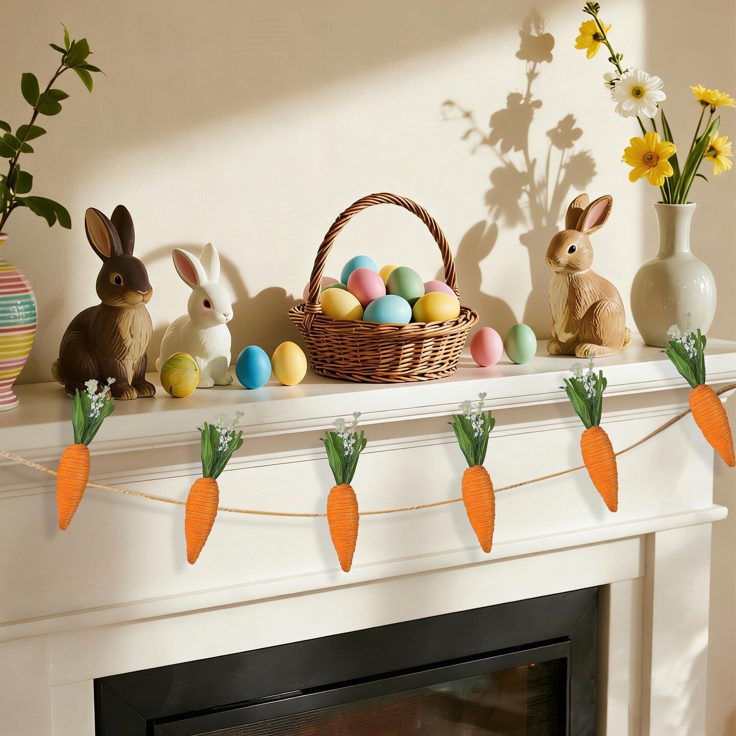 Easter Garland Decor, 12 Pcs Carrot Ornament for Mantel Decorations, 8.5 FT Hanging Artificial Carrots Garland Carrot Banner for Fireplace Home Kitchen Party