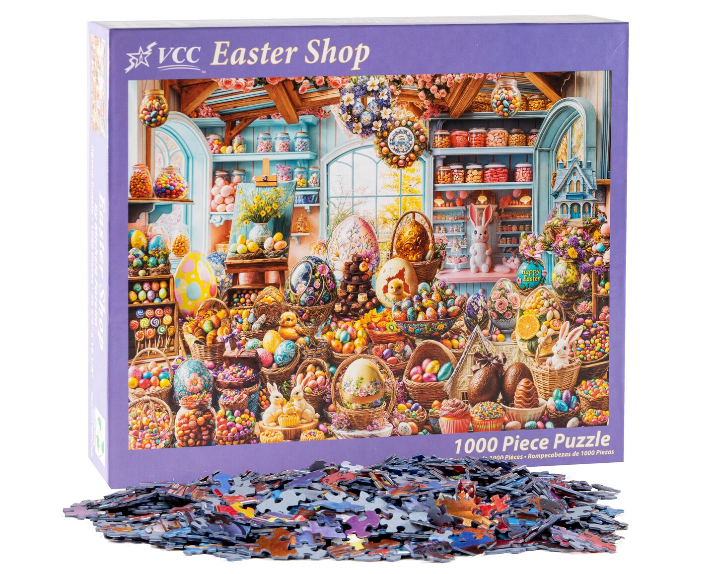 Easter Shop Jigsaw Puzzle 1000 Piece by Vermont Christmas Company - Easter Puzzles with Fully Interlocking & Randomly Shaped Pieces - 26 5/8" x 19 1/4"