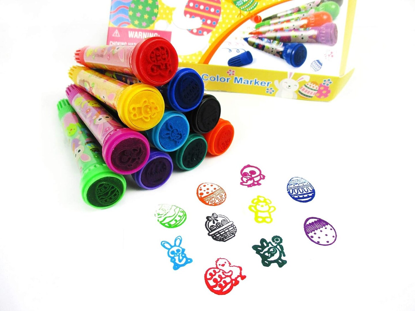 Easter Stamp Marker Set of 10, Easter Party Favors Easter Basket Stuffer Color Marker and Stamper Set,