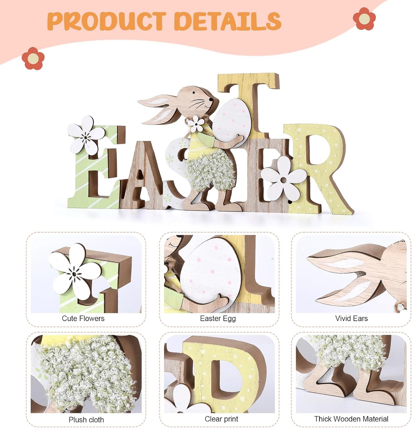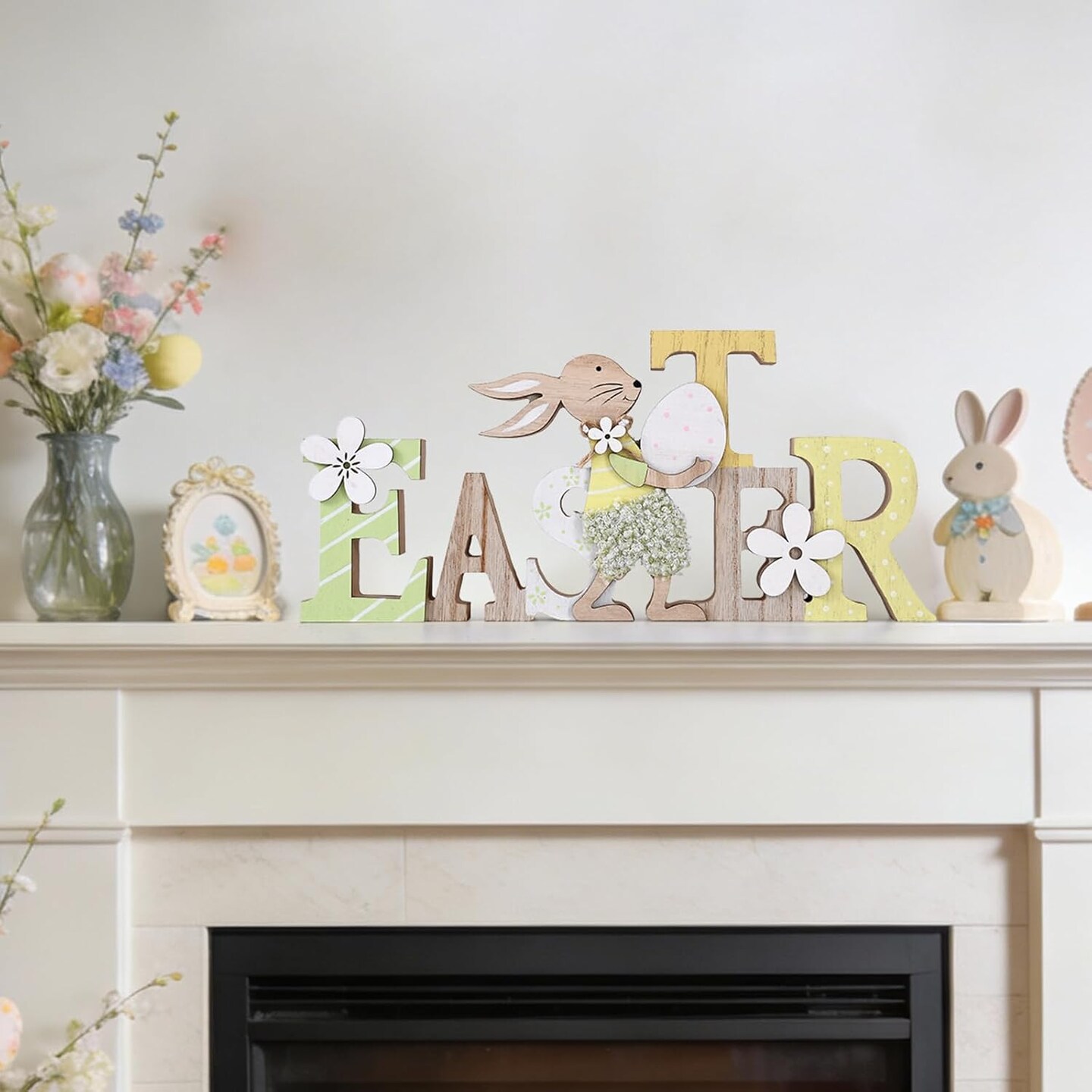 Easter Table Decorations – Wooden Bunny Block Signs for Tiered Tray, Happy Easter Tabletop Centerpiece, Rustic Wood Rabbit Décor for Kitchen, Home, Shelf & Office
