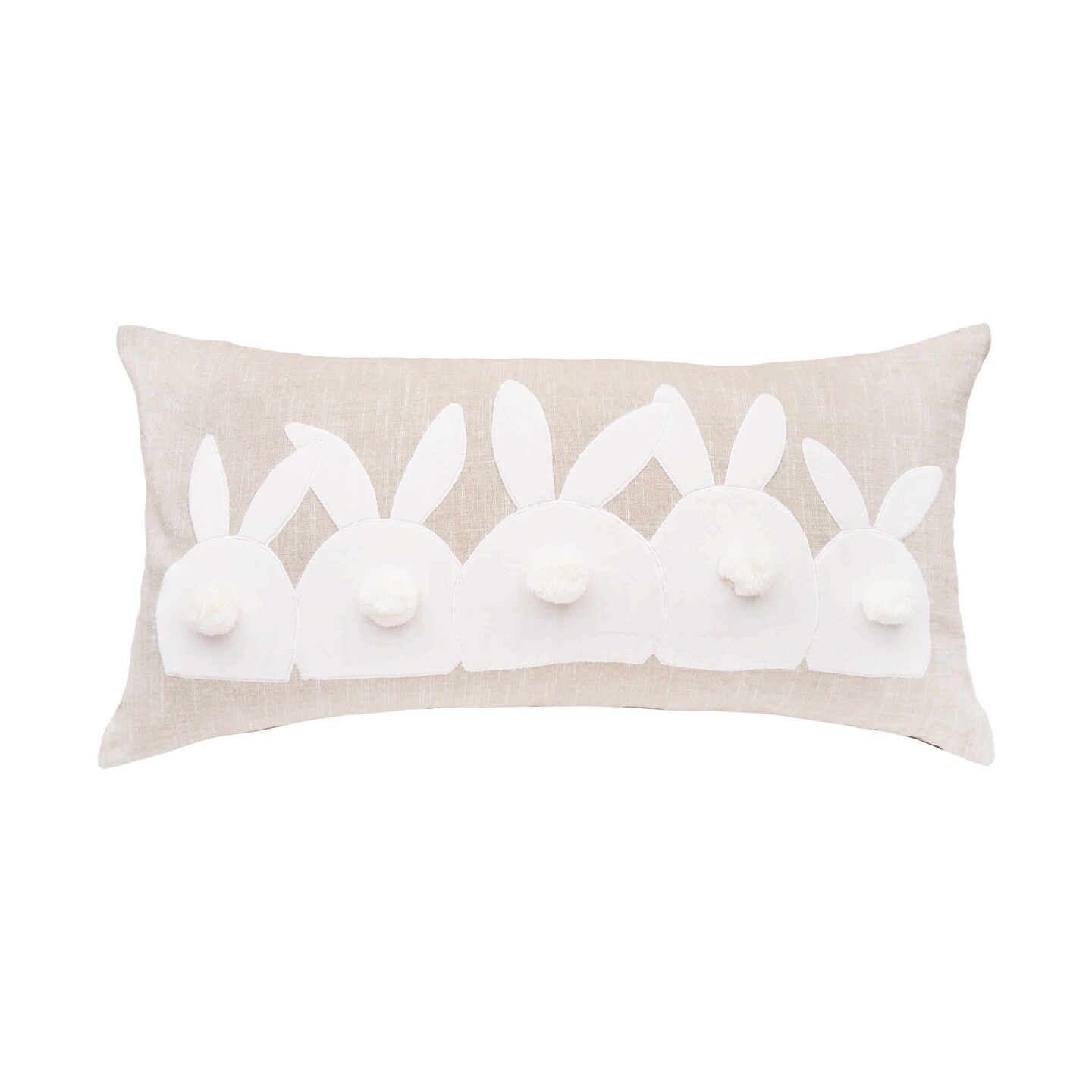 Easter White Bunny Bums w/ Tufted Tails Accent Pillow, 12" x 24"