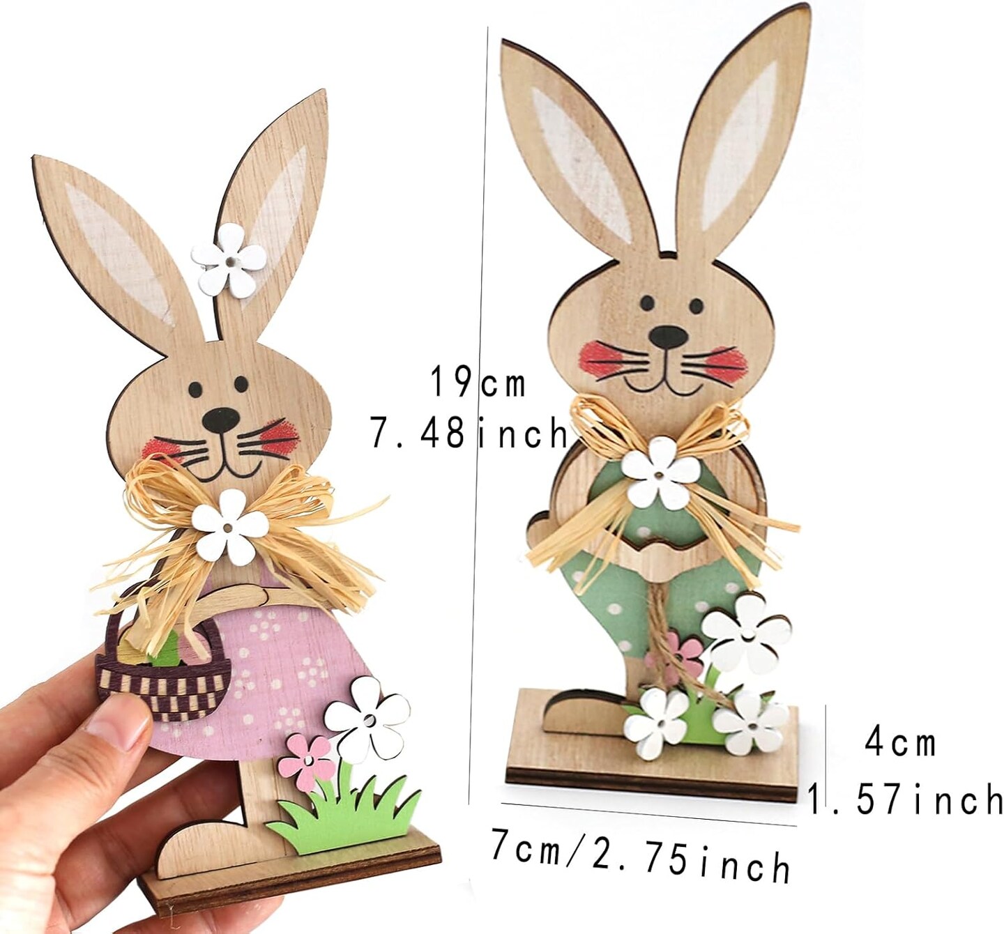 Easter Wooden Bunny Standing Tabletop Ornament Rabbit Sign Tabletop Ornament Rabbit Ornament Bunny Spring Decor Easter Wood Tabletop Ornament (A-2pcs)