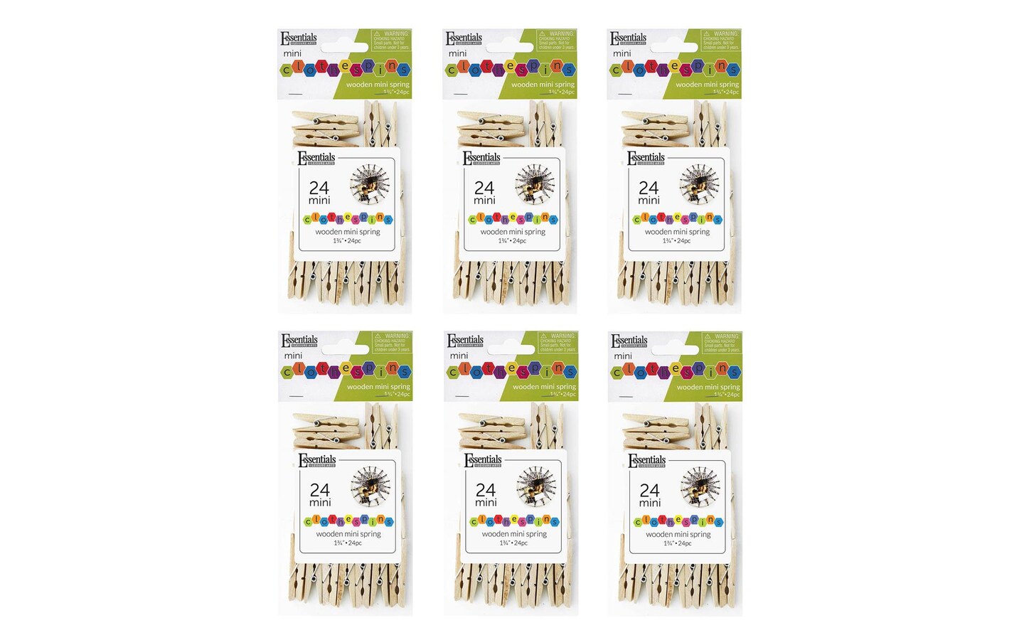 EBL Wood Clothespins Mini Spring 1 3/4" 6pksof24pc