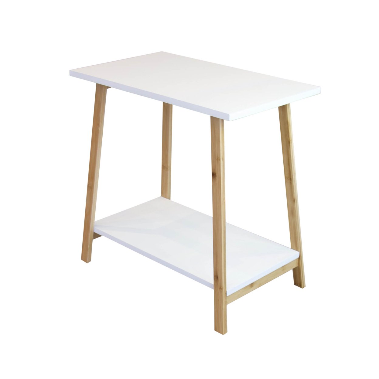 Eccostyle 2-Tier Solid Bamboo Frame Recliner End Table - White