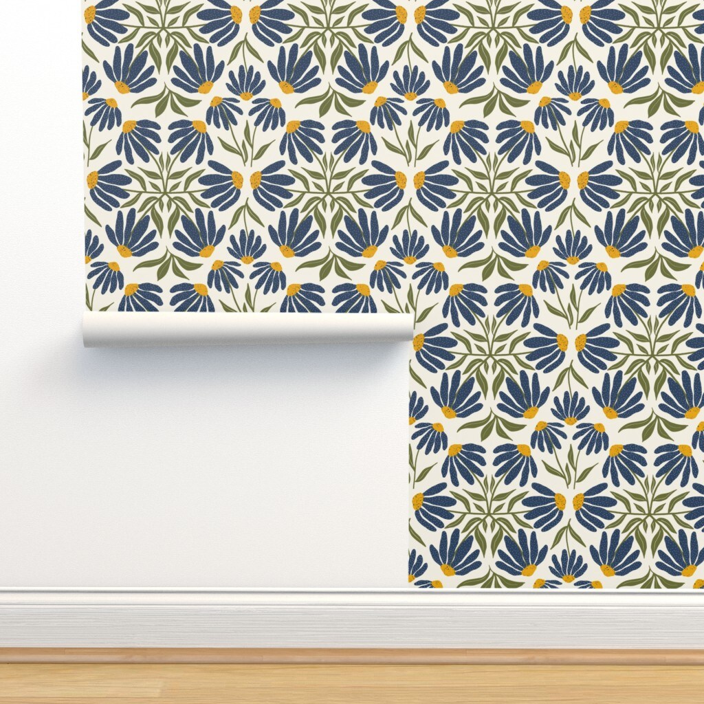 Echinacea Botanical Tile Wildflower Blue Yellow Gold Coneflowers Native Species Custom Removable Wallpaper by Spoonflower Peel & Stick Wallpaper 2FT Wide
