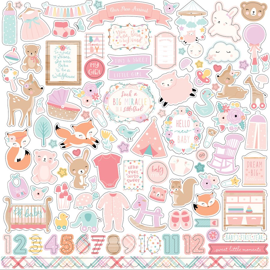 Echo Park Hello Baby Girl 12x12 Element Stickers Sheet