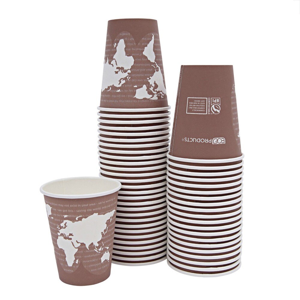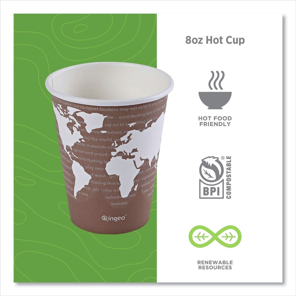 Eco-Products 8 oz. World Art Renewable and Compostable Paper Hot Cups - Brown/White (50/Pack)