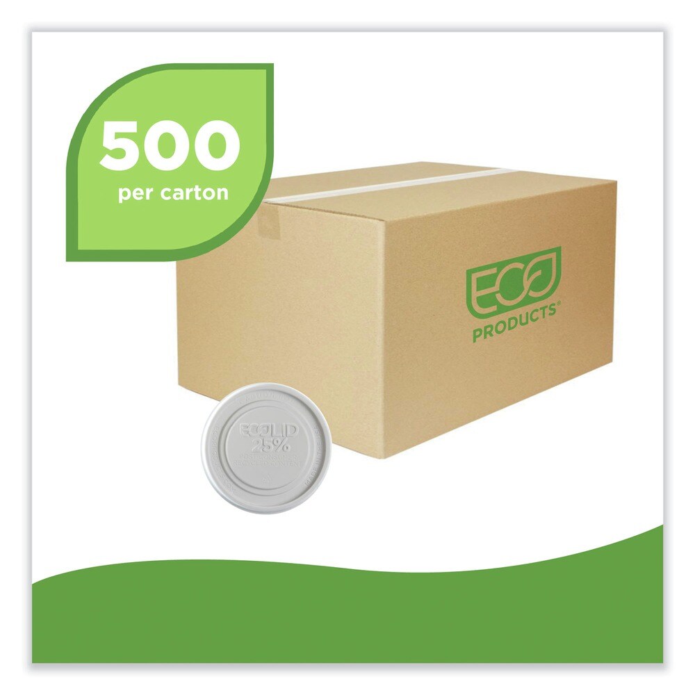Eco-Products Evolution World EcoLid 25 Percent Recycled Food Container Lid Fits 12 to 32 oz Containers - White (500/Carton)