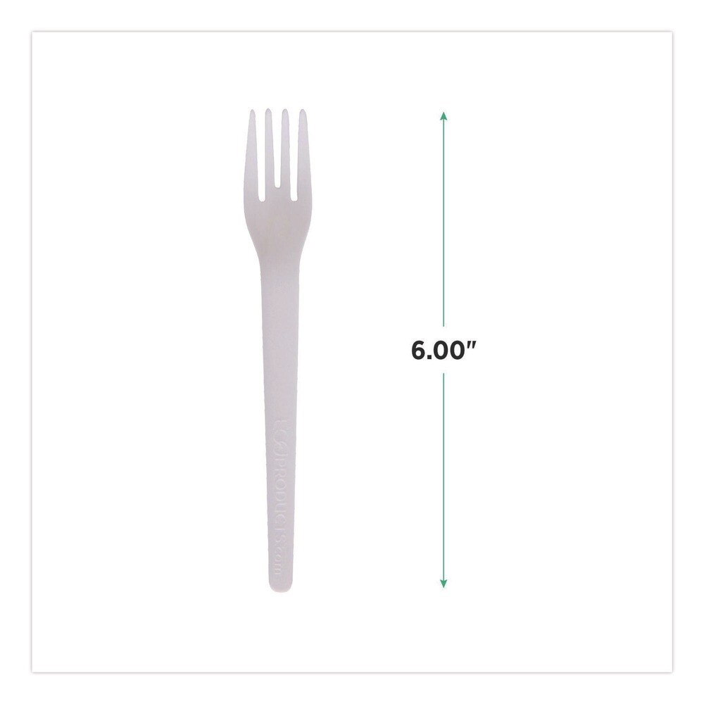 Eco-Products Plantware 6 in. Fork Compostable Cutlery - White (1000/Carton)