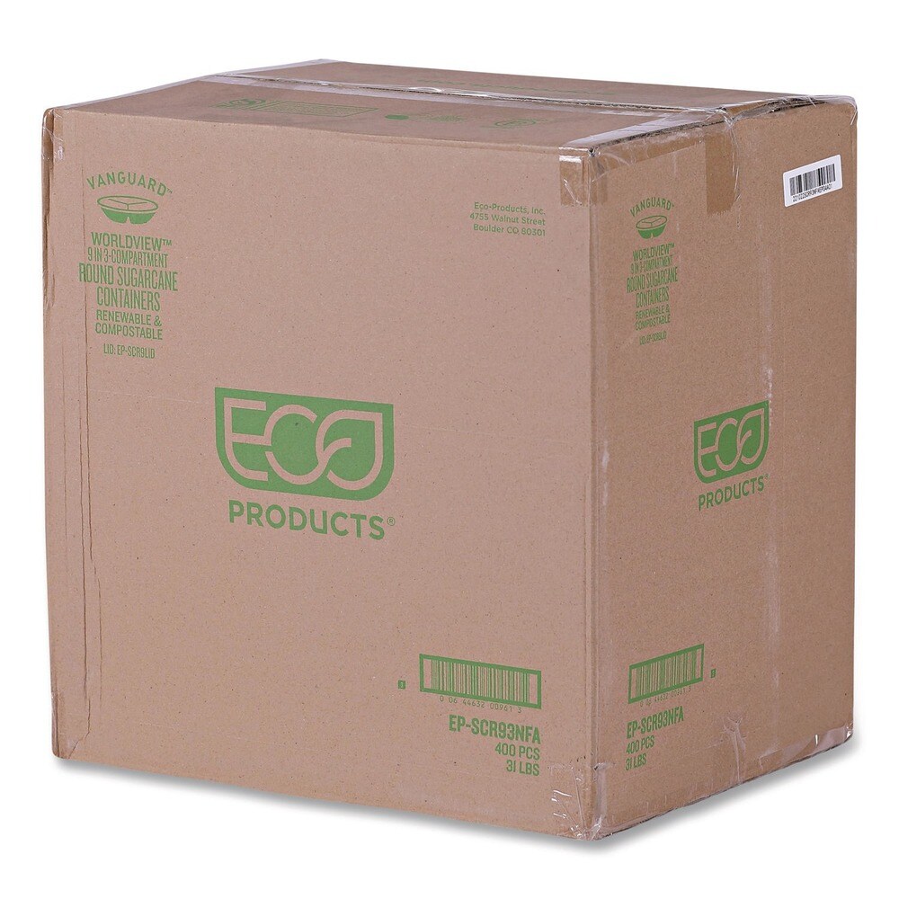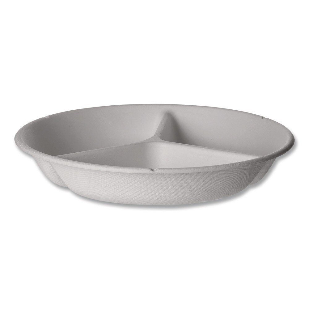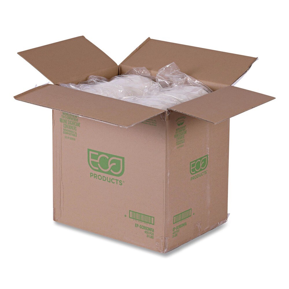 Eco-Products Vanguard 28 oz. 3-Compartment Bowl Renewable and Compostable Sugarcane Containers - White (400/Carton)