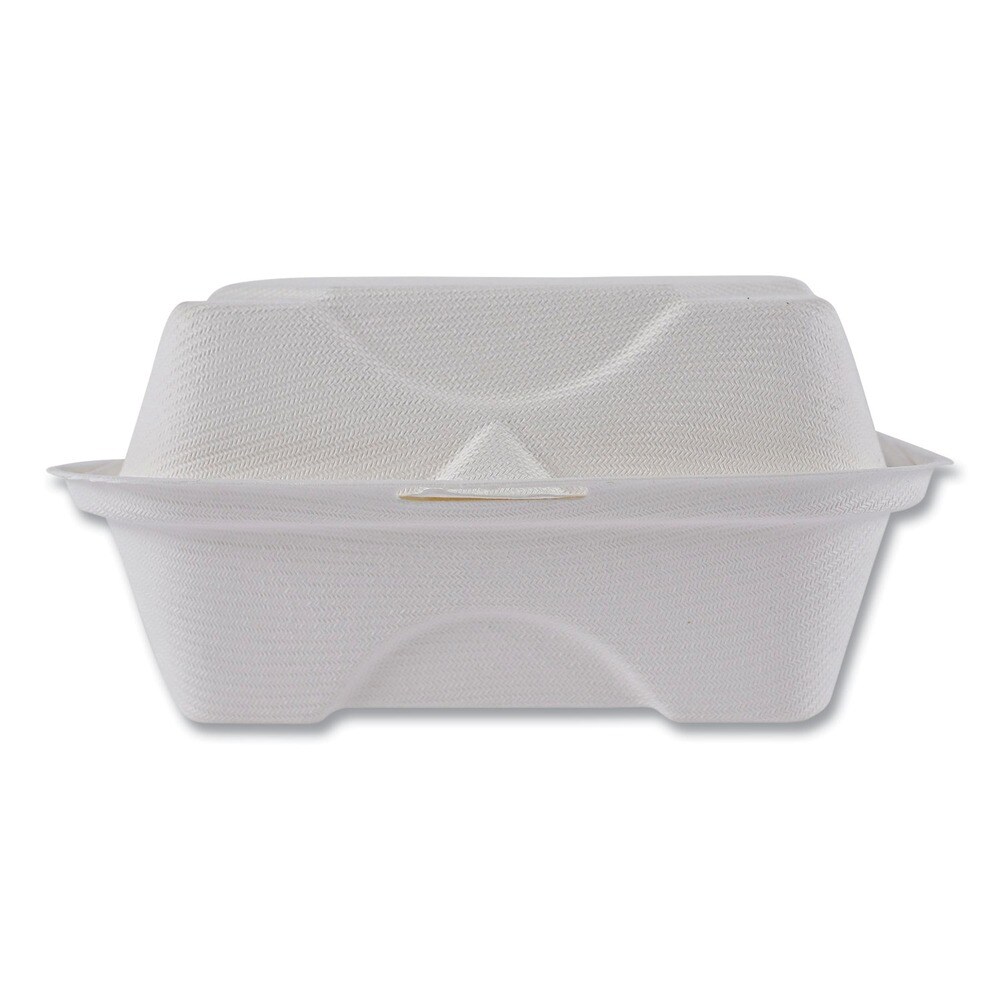 Eco-Products Vanguard 6 in. x 6 in. x 3 in. Renewable and Compostable Sugarcane Clamshells - White (500/Carton)