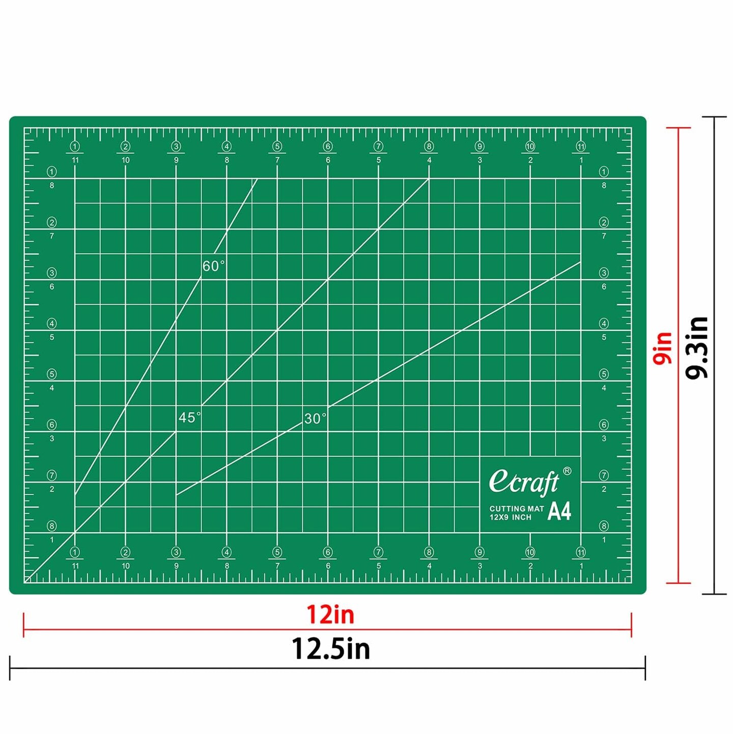 Ecraft Self Healing Sewing Mat - 9" x 12" Double Sided 5-Ply Cutting Mat for Craft, Sewing, Fabric,Quilting,Scrapbooking Project - Rotary Board Mats in Green/Black