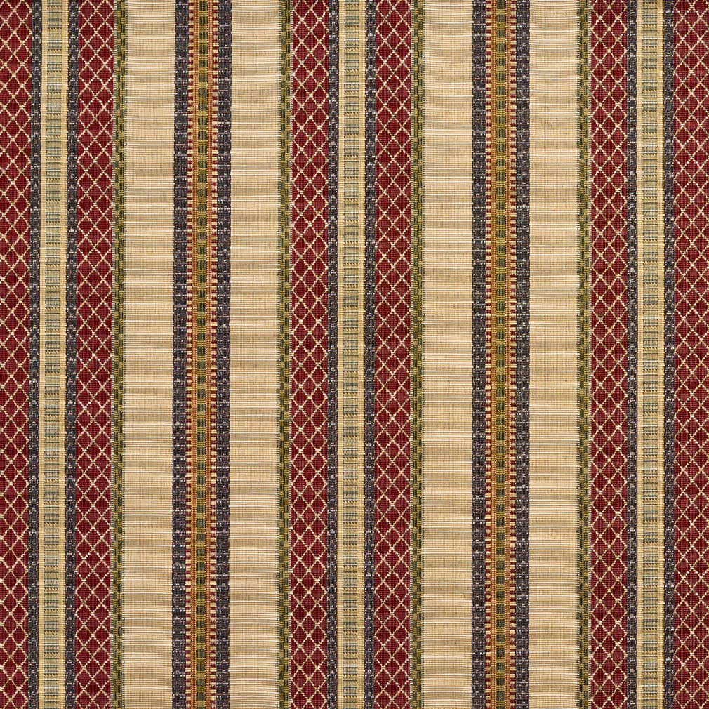 Ecru Stripe - Red & Burgundy Stripe Upholstery Fabric 54 Inches"