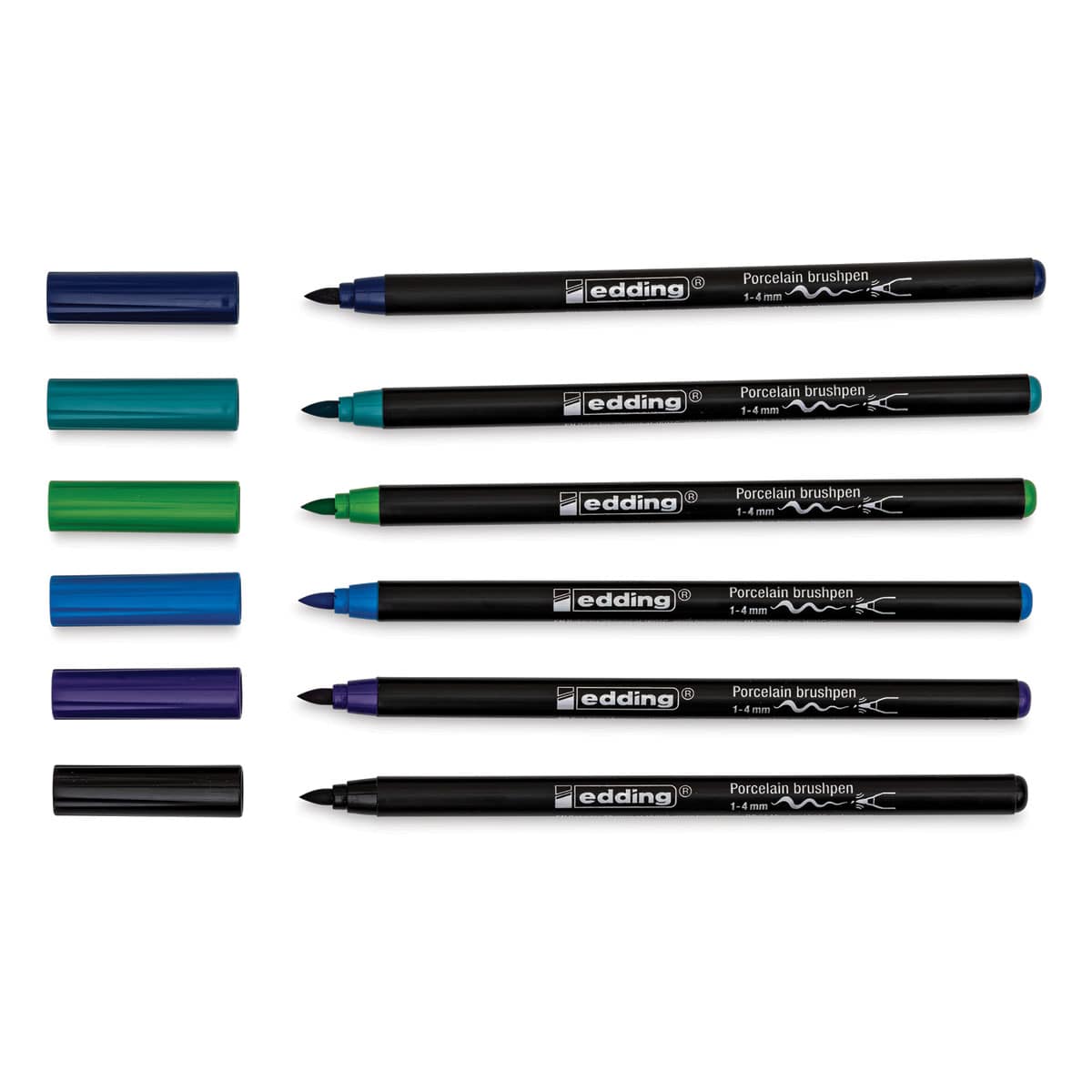 Edding E4200 Porcelain Brush Pens Set of 6, Cool Colors