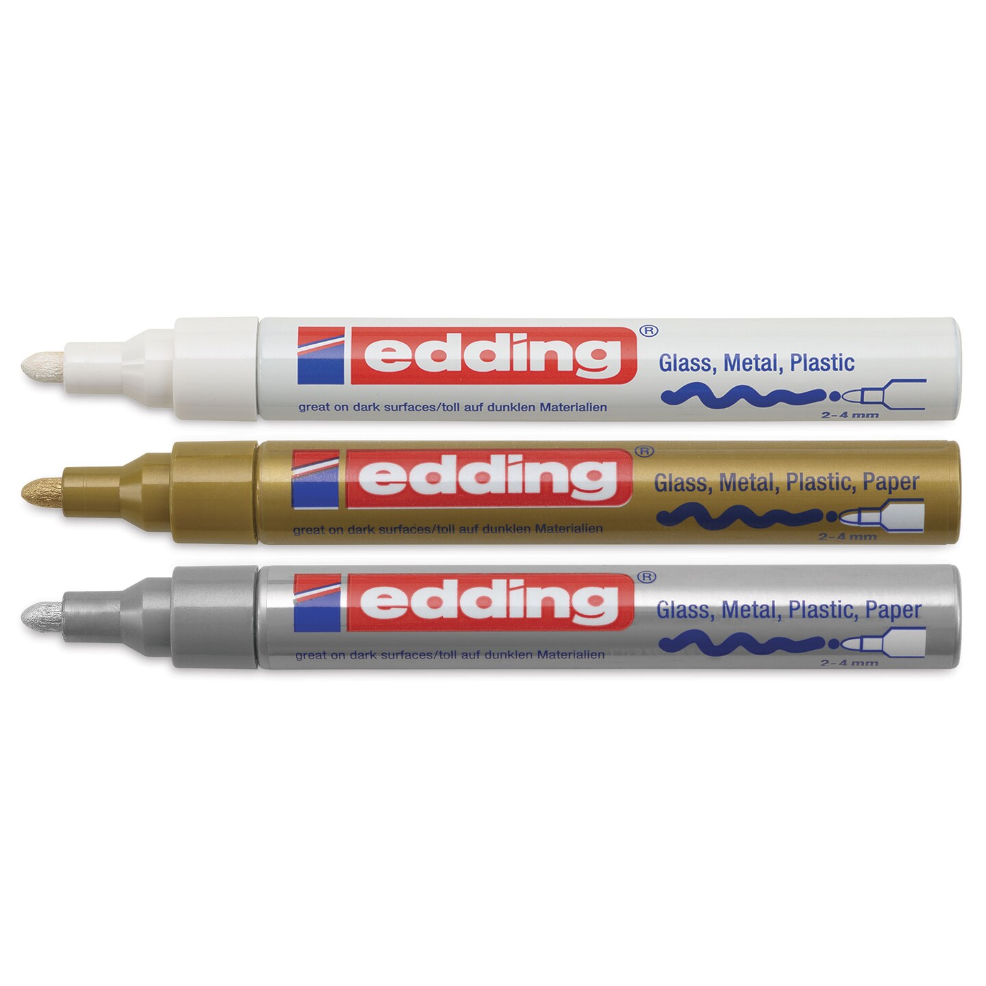 Edding Gloss Paint Markers - Metallic Colors, Set of 3, Round Nib, 2-4 mm