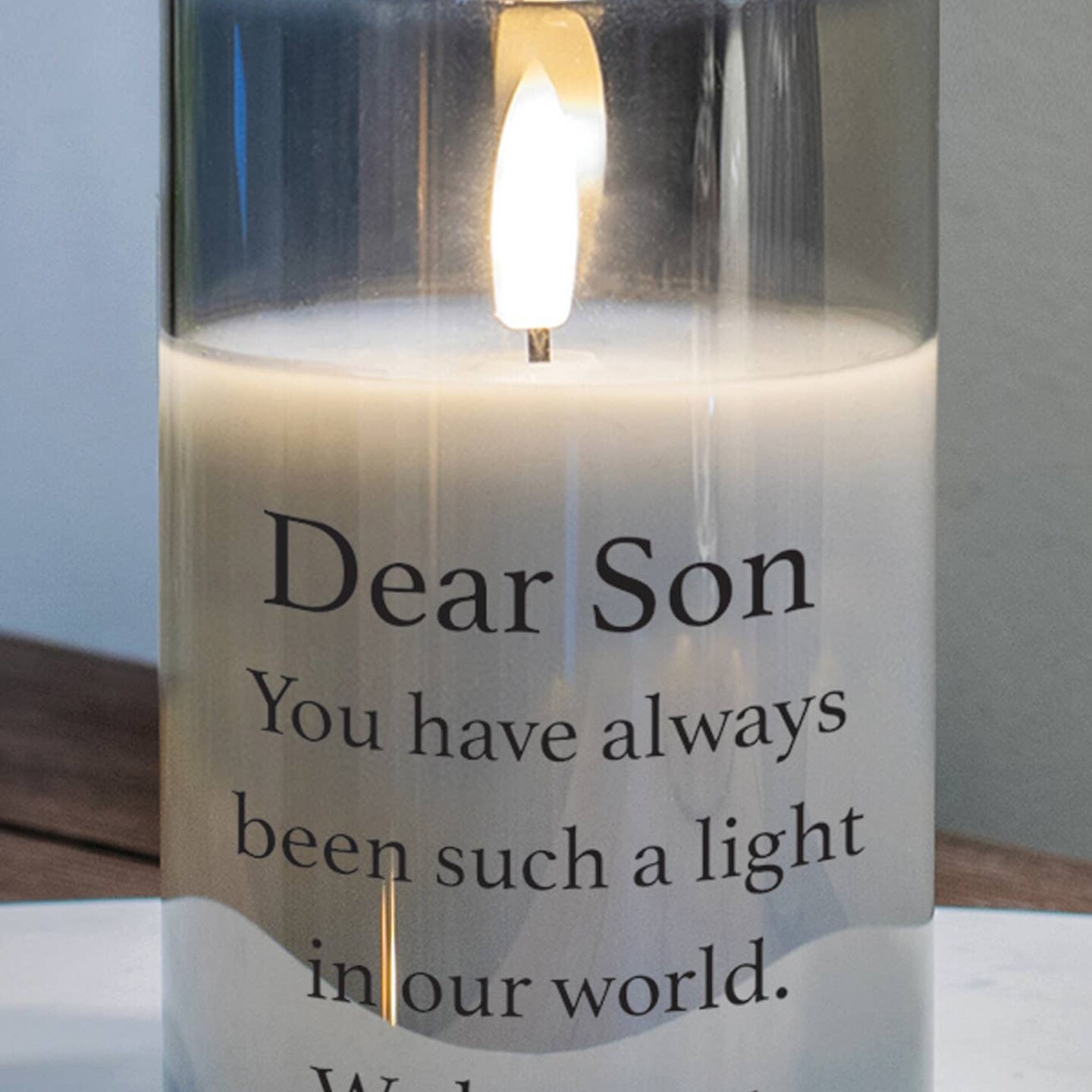 Edge Collection - 5" x 3" - Gray - Flameless LED Candle with Heartfelt Message for Son - 1 Piece