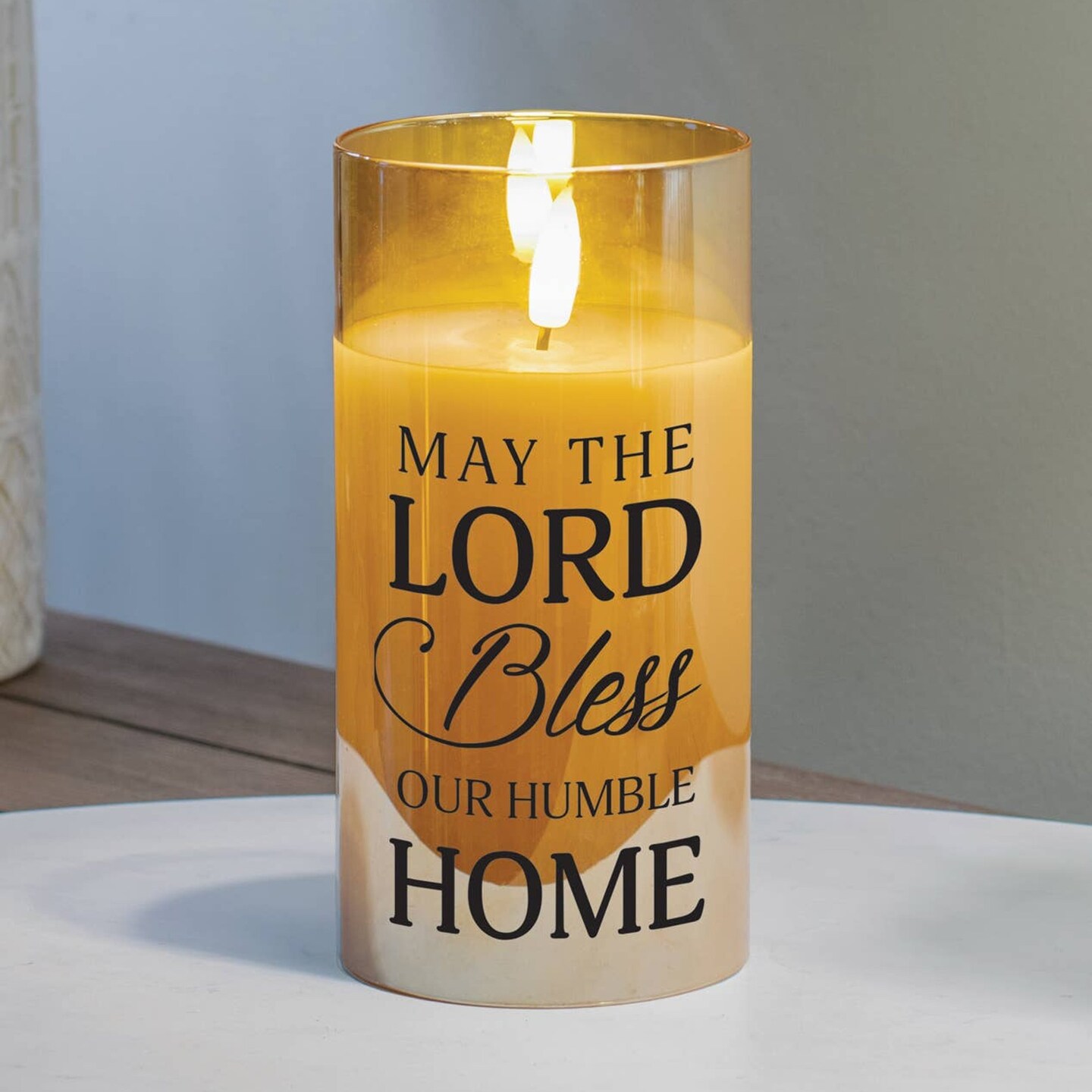 Edge Collection - 6" x 3" - Gold - Flickering LED Candle with Blessing Message - 1 Piece